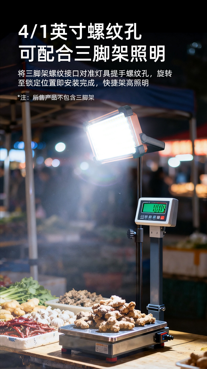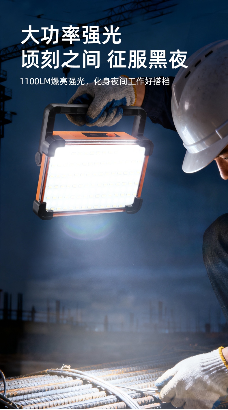 1、多档调光,可满足不同使用场景下的照明需求; 2、含提手,握感更舒适。携带更简单; 3、新型高亮远射灯珠,60W大功率,亮度高,照明效果好。