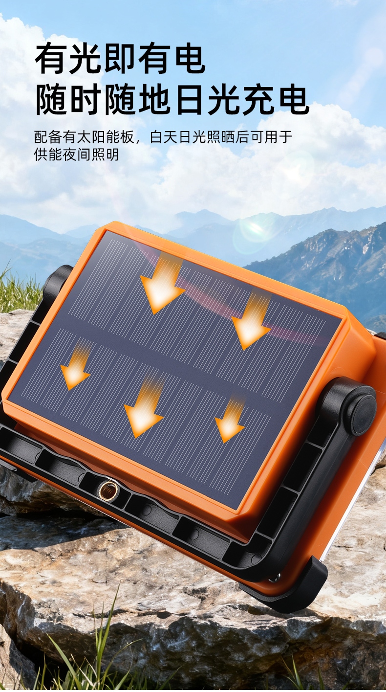 主要卖点:三色可调,数字电显,太阳能充电,大容量电池,4/1英寸螺纹孔,挂装。