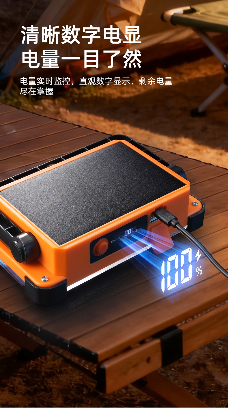 2、灯具配有数字电显屏,可时时了解剩于电量,满电显屏显示100%。