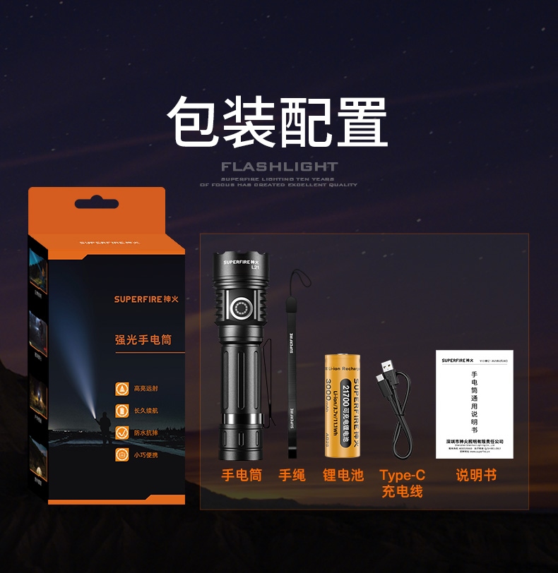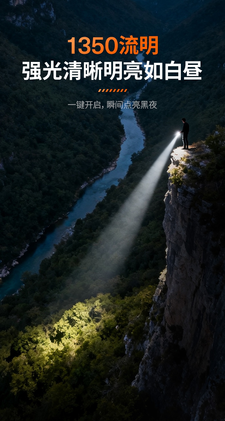 四档调光 Type-C充电 电量显示 铝合金筒身 持久续航 强力防水