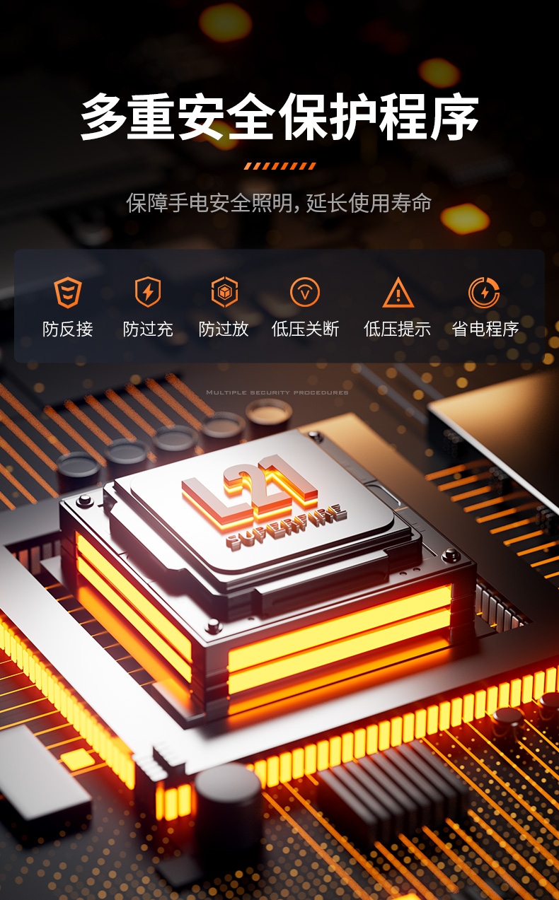 2、多种安全程序,可有效保护手电使用安全,延长手电使用寿命。