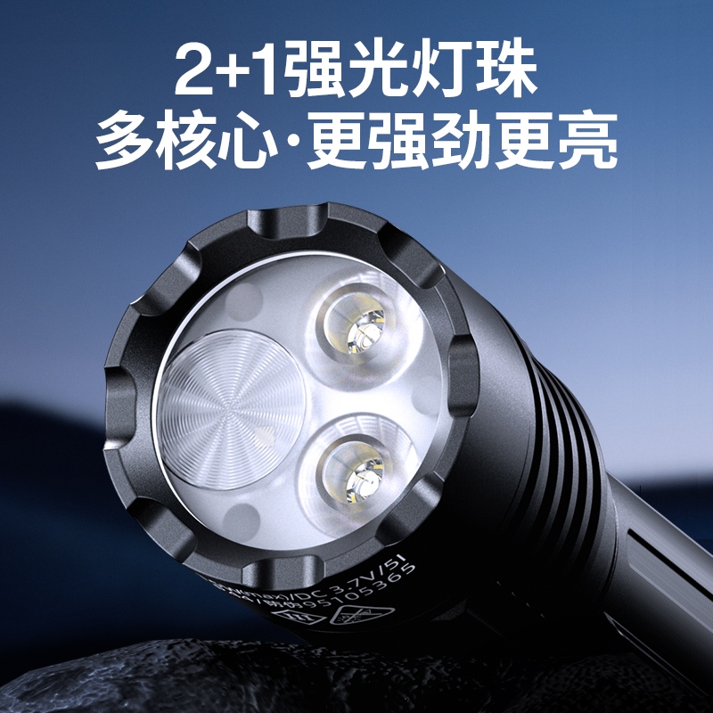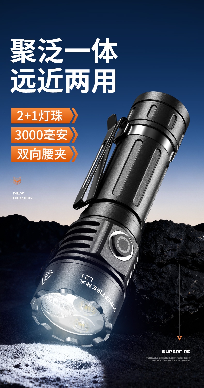 1、千米远射,射程更远,光斑更聚焦。 2、进口灯珠,亮度高,照明效果更好。 3、前后双按键,光源一键点亮,高亮瞬间开启。