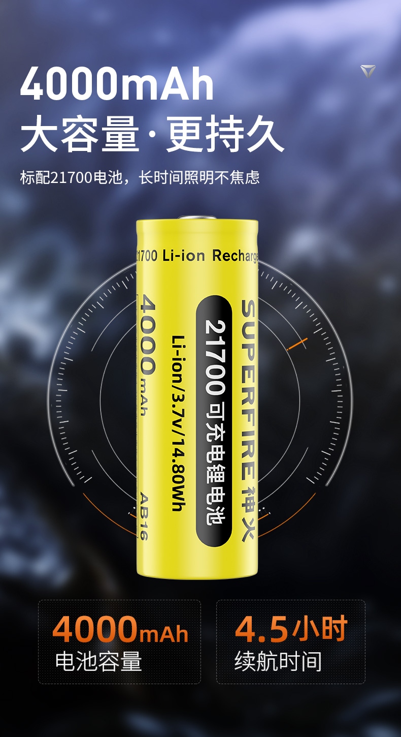 6、约4.5H续航,满足常规夜间照明需求。