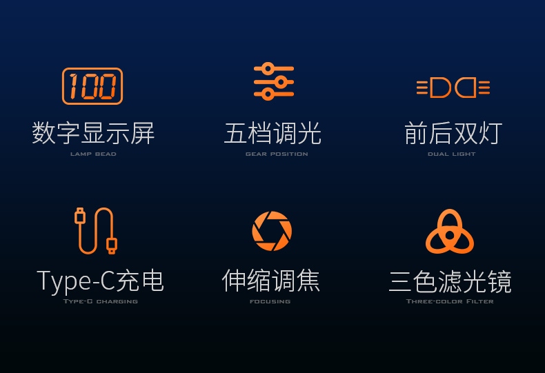 2、推拉灯头可实现伸缩调焦。