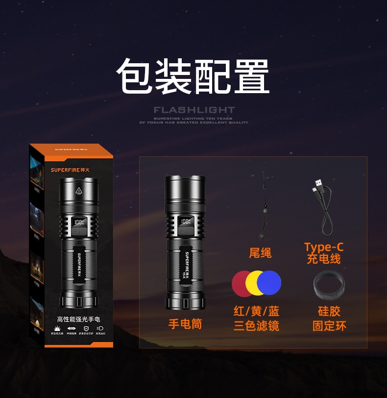 8、铝合金筒身,防水耐摔。