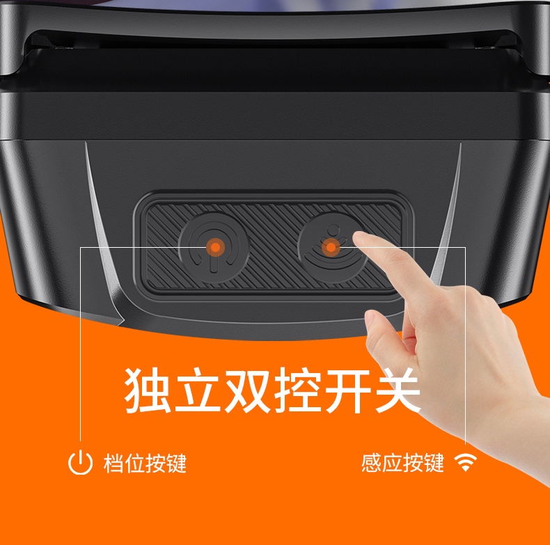 2、单击左边开关开启感应功能,续按关闭感应功能,当感应功能开启时,单击右边开关可正常调节档位。