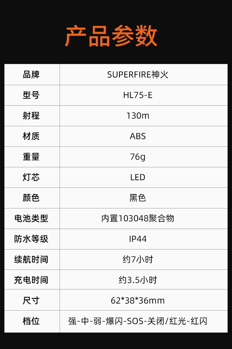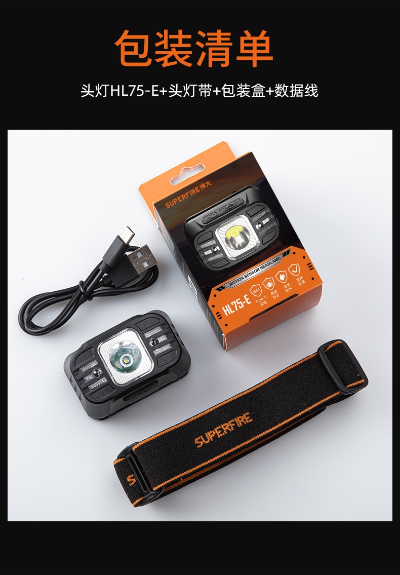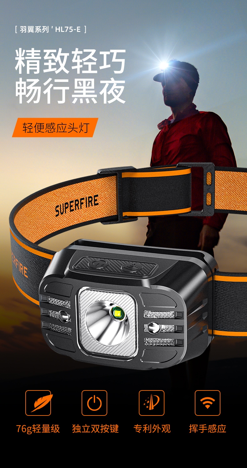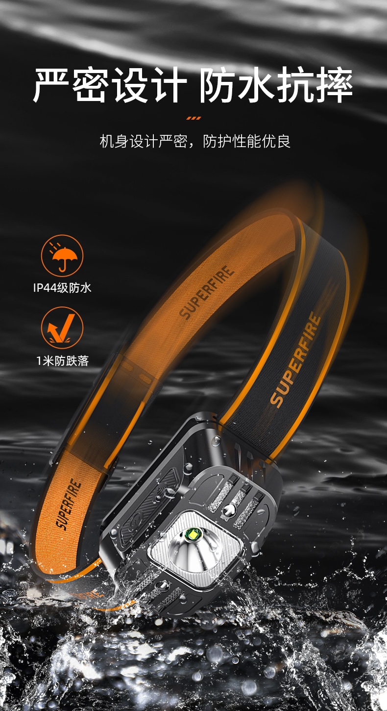 强光亮度,运动头灯,前后均衡设计,轻便不压头,可调节式头灯带,佩戴方便舒适,伸缩调焦,光照范围大,照射距离远,头灯角度调节,超90度角度随意调节,适宜各种环境使用