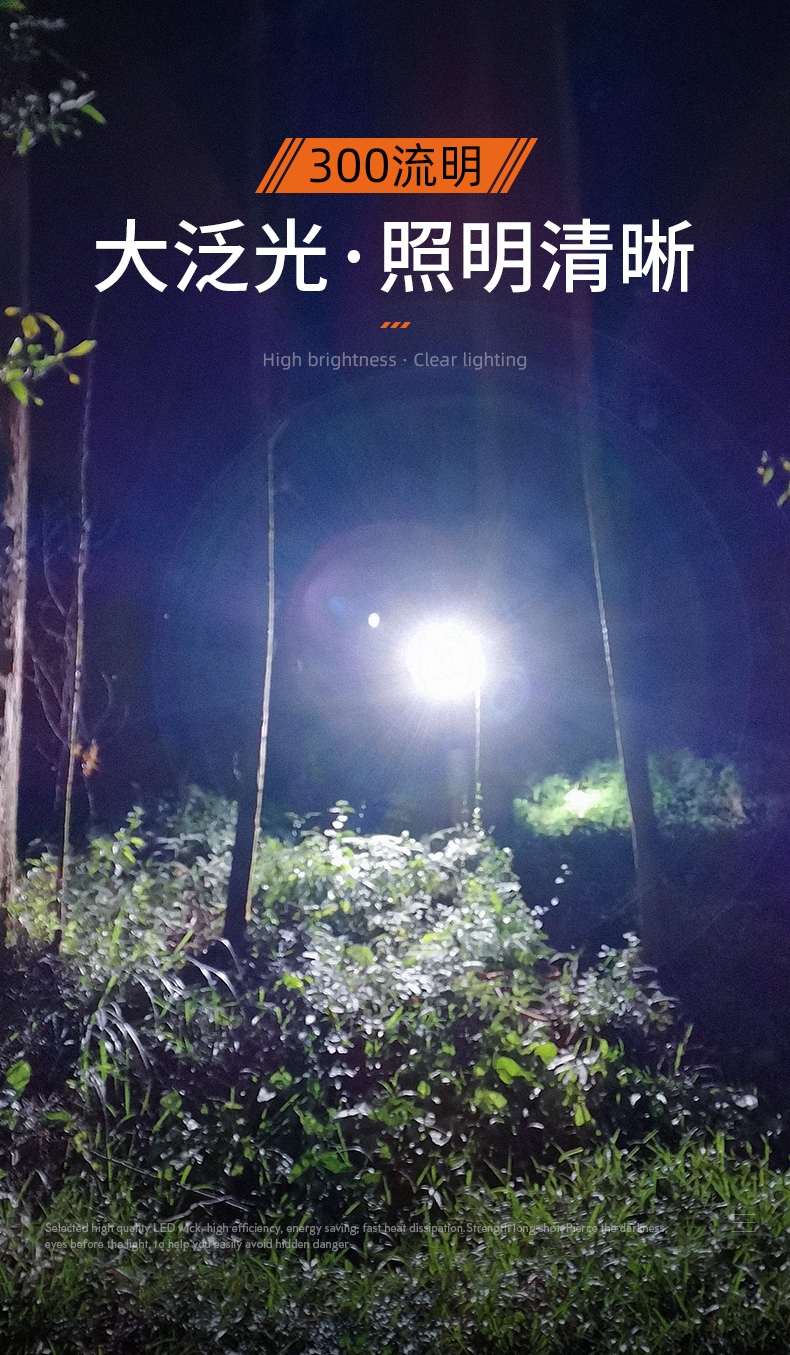1、千米远射,射程更远,光斑更聚焦。 2、进口灯珠,亮度高,照明效果更好。 3、前后双按键,光源一键点亮,高亮瞬间开启。