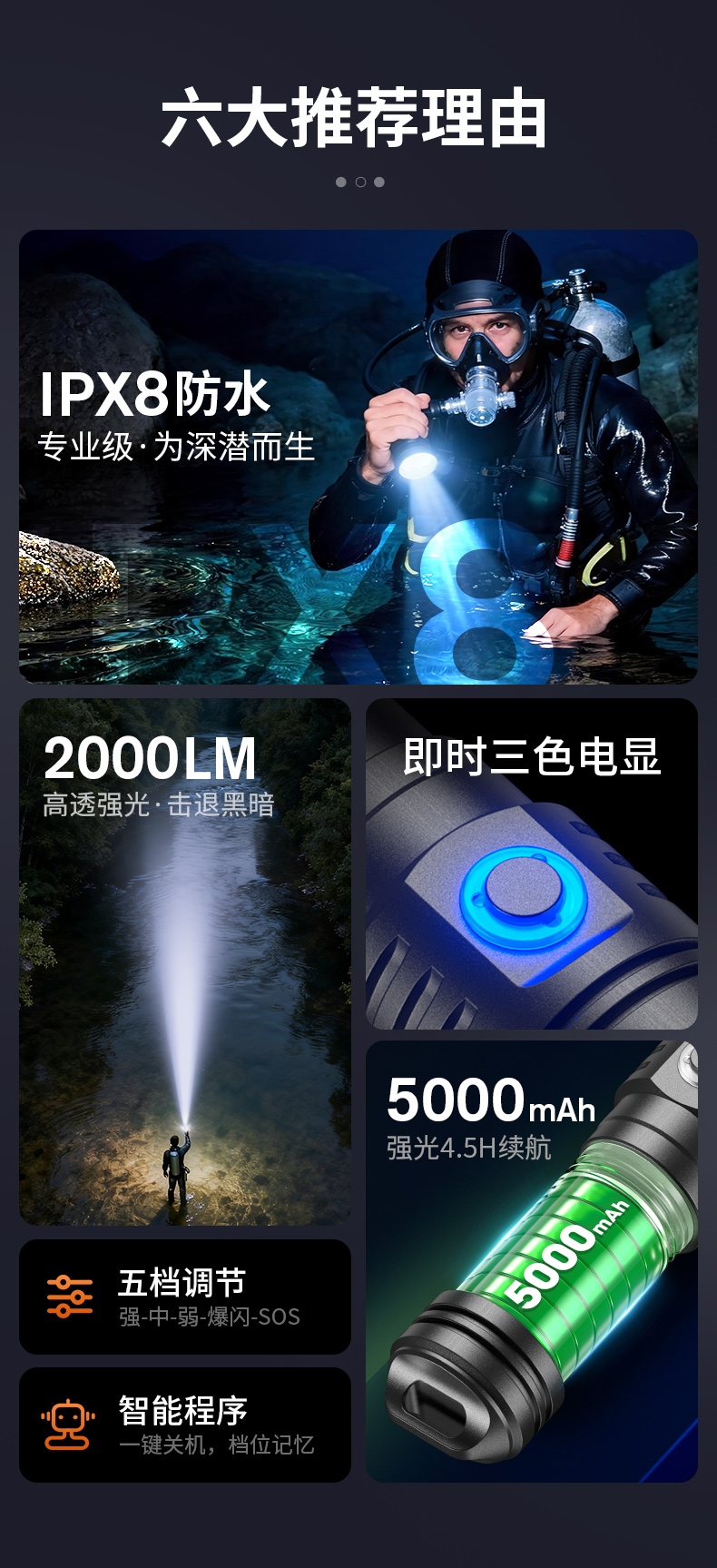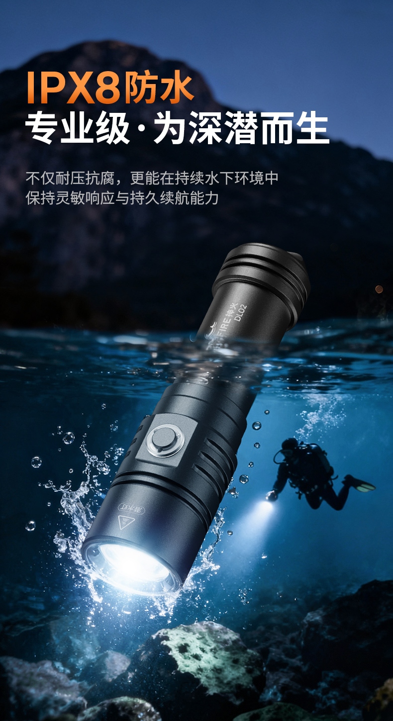 紧凑便携设计:轻量化设计与人体工学外形相结合,方便携带且握持舒适,不会给潜水者带来额外负担。