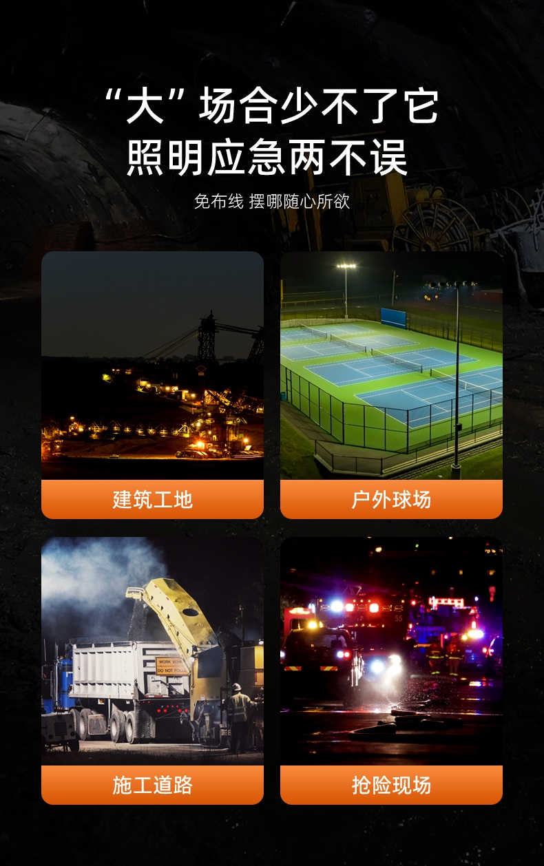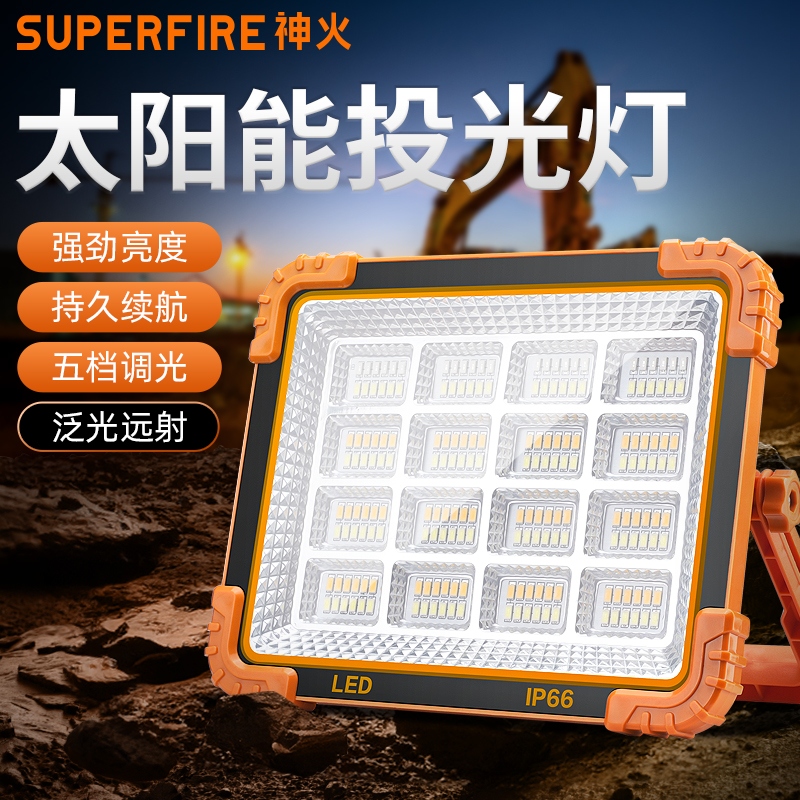 1、多档调光,可满足不同使用场景下的照明需求; 2、含提手,握感更舒适。携带更简单; 3、新型高亮远射灯珠,60W大功率,亮度高,照明效果好。