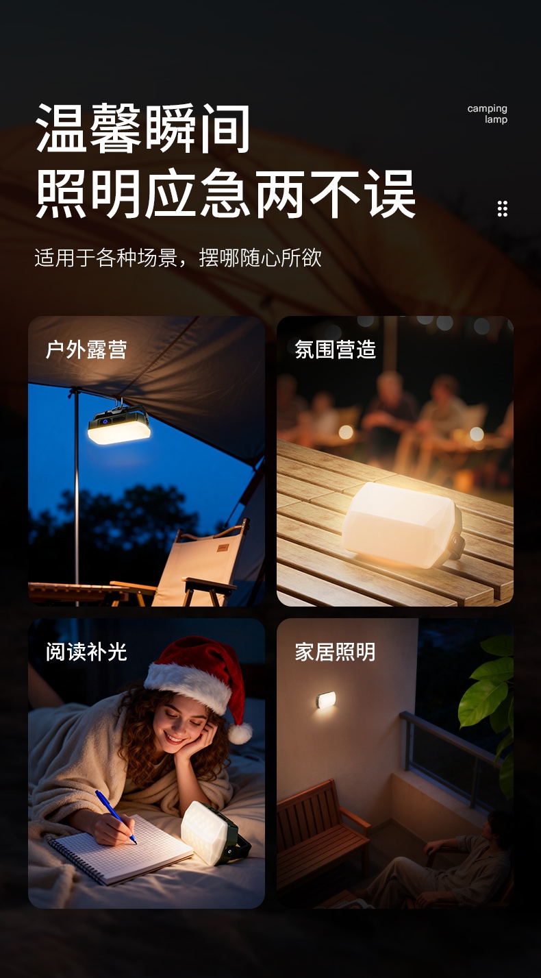 4、多功能营地灯,此灯带有磁吸、螺母孔、挂钩、支架等功能。