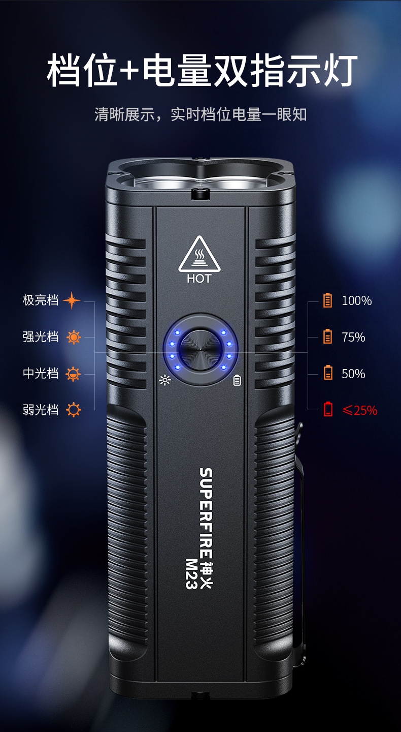 四档调光 Type-C充电 电量显示 铝合金筒身 持久续航 强力防水
