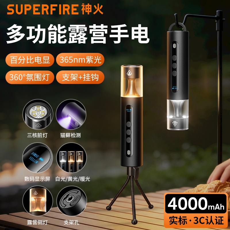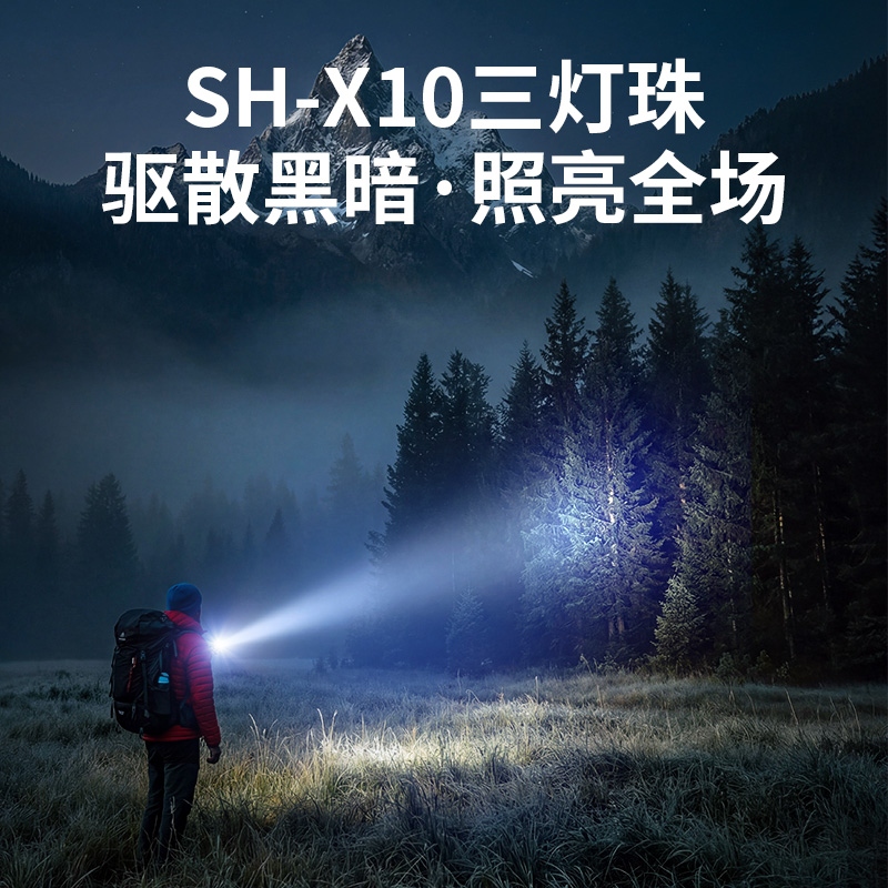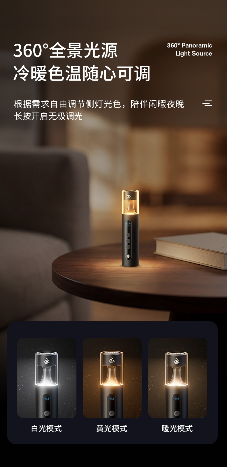 1、前灯+侧灯+紫光、3种照明模式,多档调光,可满足不同使用场景下的照明需求。