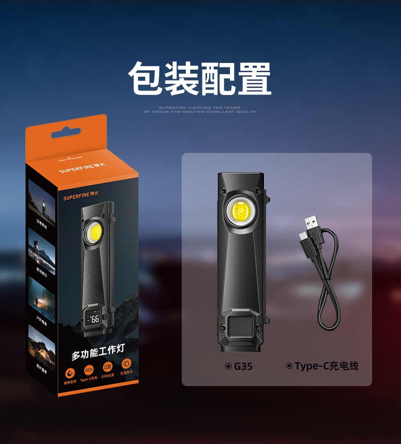 四档调光 Type-C充电 电量显示 铝合金筒身 持久续航 强力防水