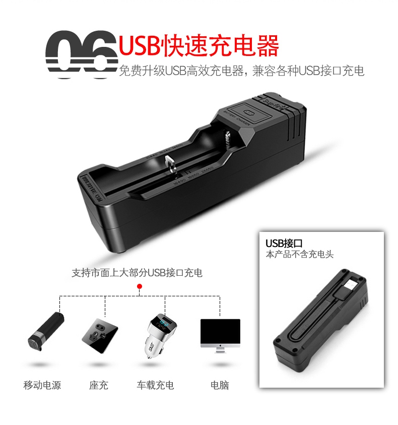 1.单击左边开关开启感应功能,同时开启强光档,续按关闭感应功能(关闭感应功能,光源不会关闭),当感应功能开启时,单击右边开关可正常调节档位。 2.多样化充电,使用方便:设有Type-c充电口,可使用充电器、充电宝、电脑等设备为灯具充电。 3.电量显示:实时