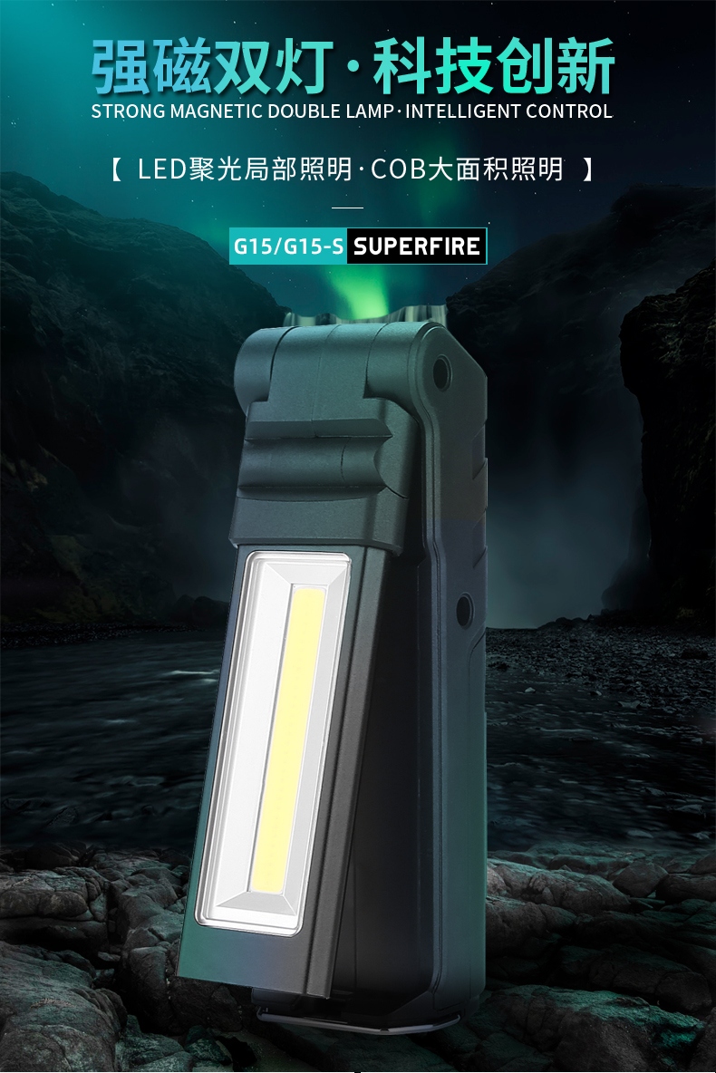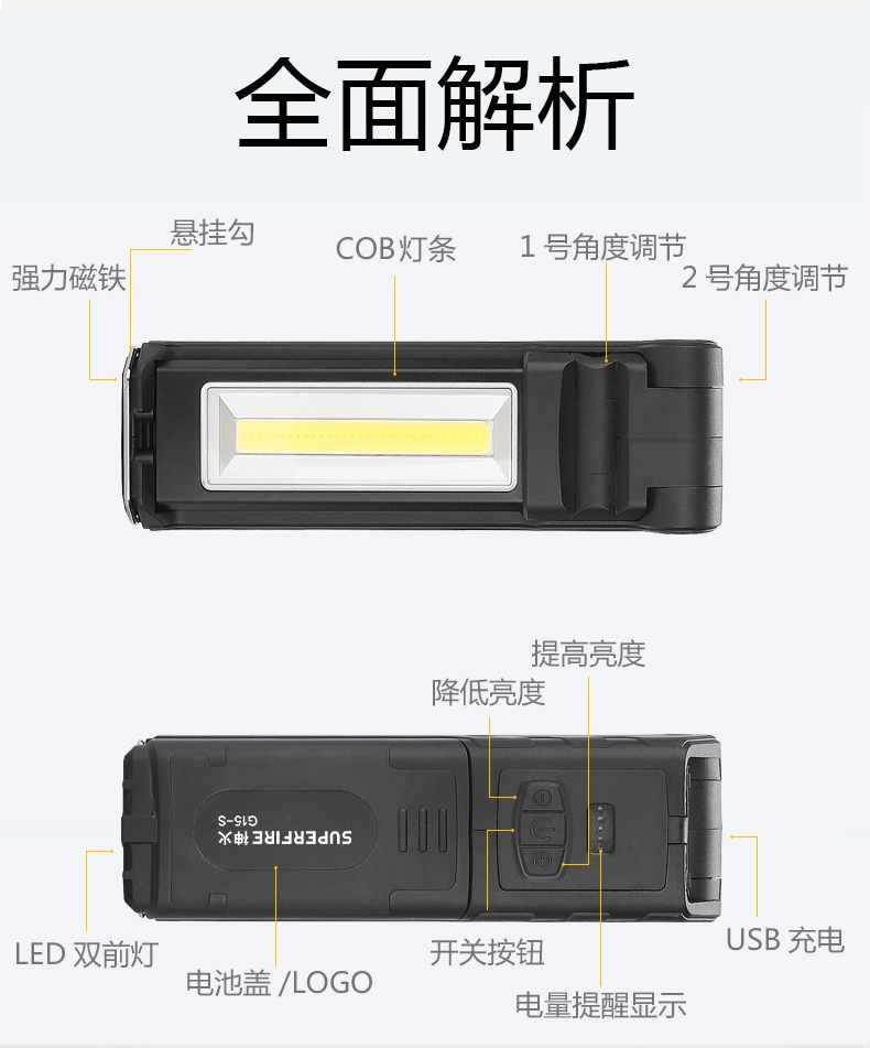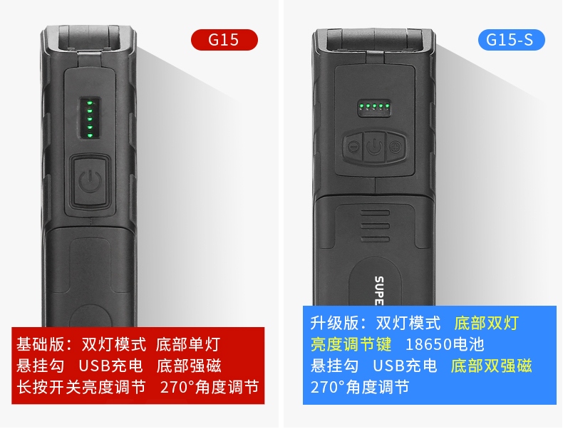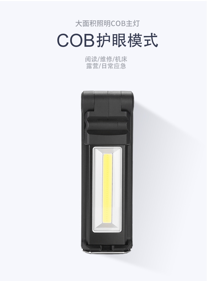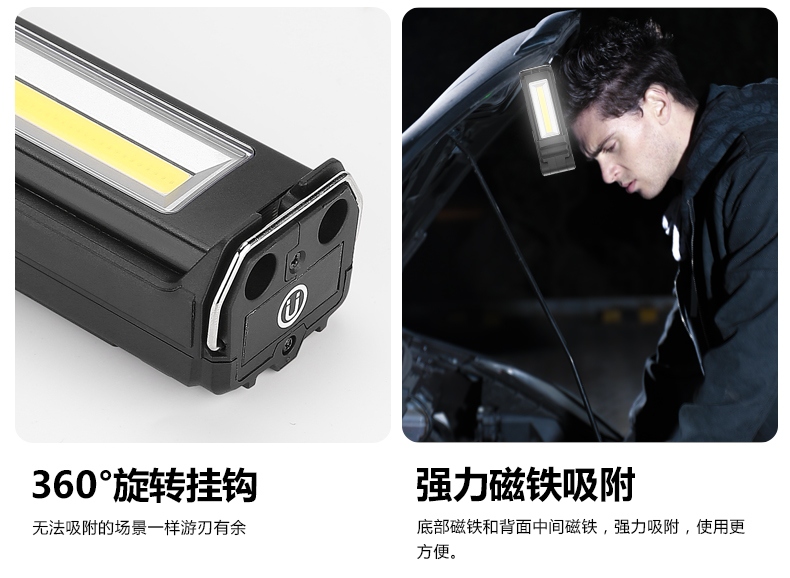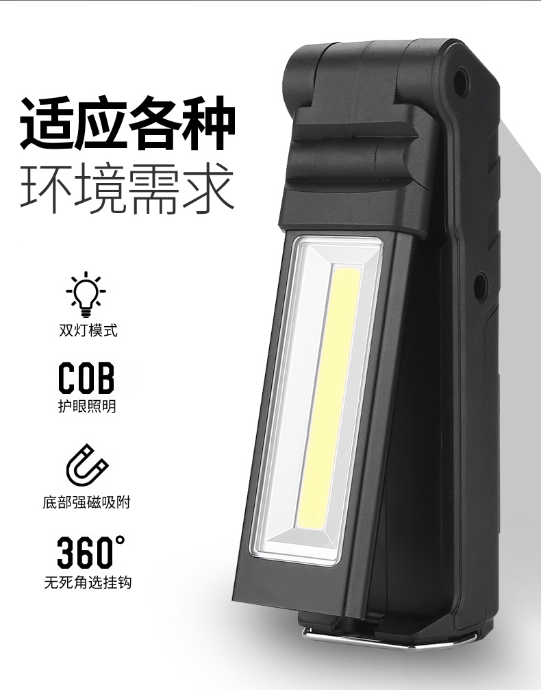 多功能双照明模式工作灯,可当移动电源、可270度调节角度、带电量提示、底部双强磁、人性化的设计可随意调节光的强弱(使用TPR材料)