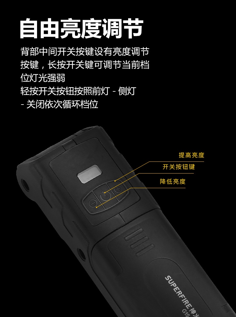 1、千米远射,射程更远,光斑更聚焦。 2、进口灯珠,亮度高,照明效果更好。 3、前后双按键,光源一键点亮,高亮瞬间开启。