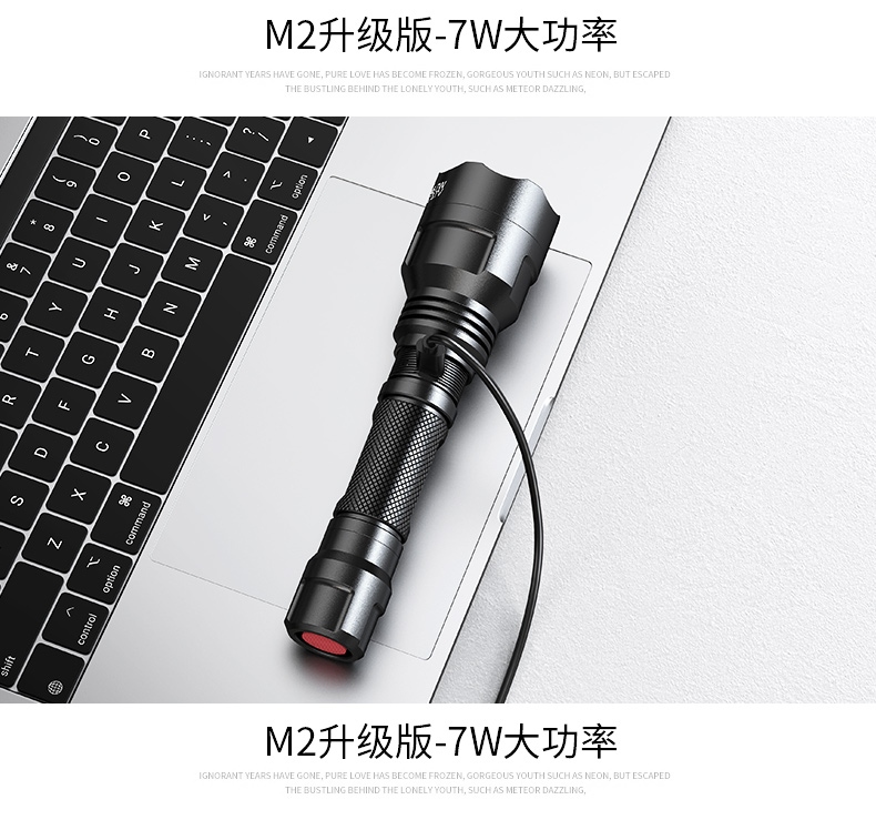 1、千米远射,射程更远,光斑更聚焦。 2、进口灯珠,亮度高,照明效果更好。 3、前后双按键,光源一键点亮,高亮瞬间开启。
