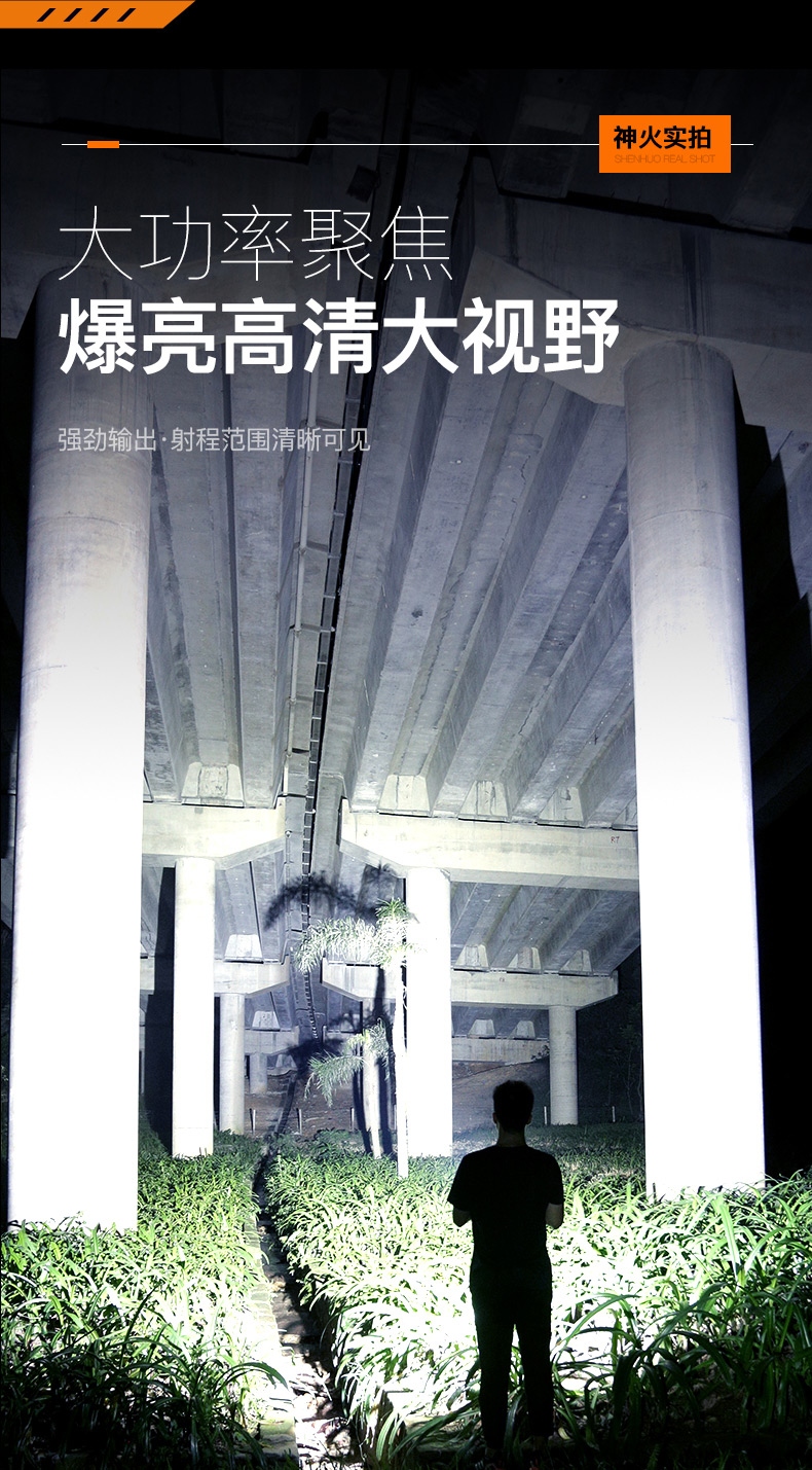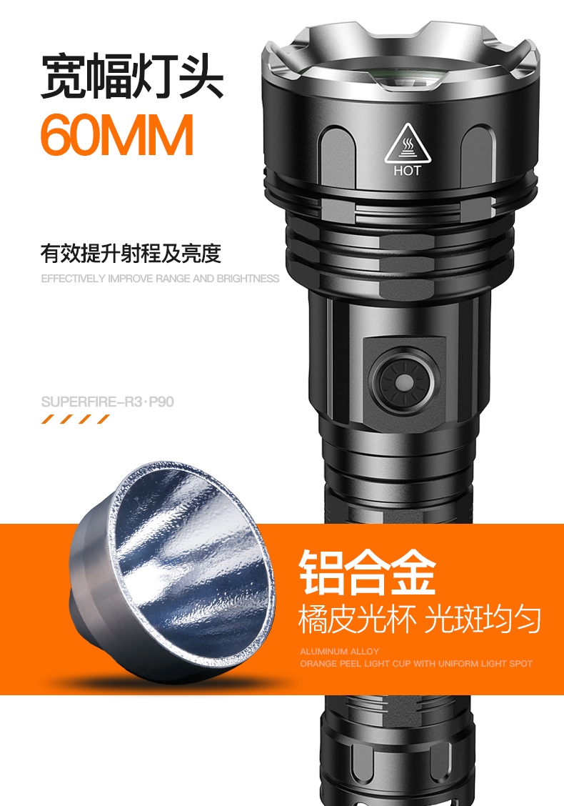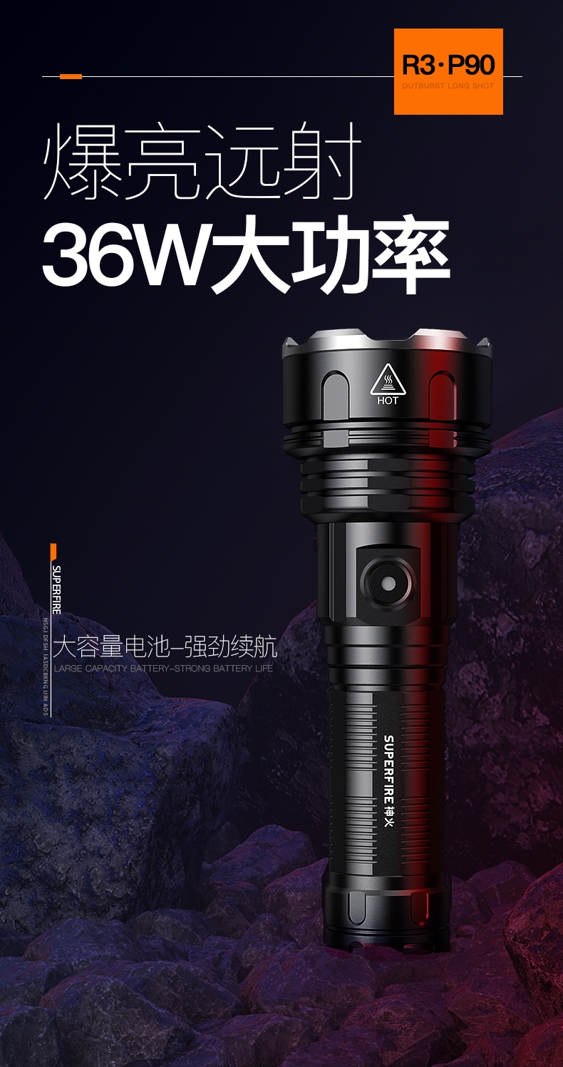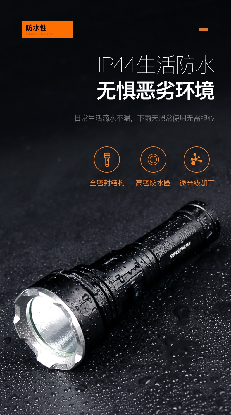 1、千米远射,射程更远,光斑更聚焦。 2、进口灯珠,亮度高,照明效果更好。 3、前后双按键,光源一键点亮,高亮瞬间开启。