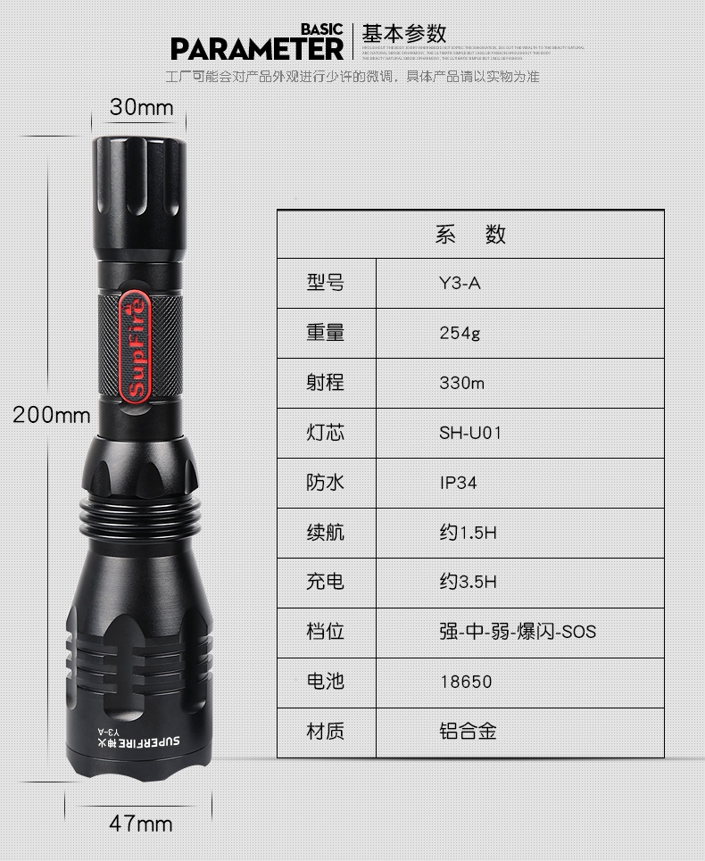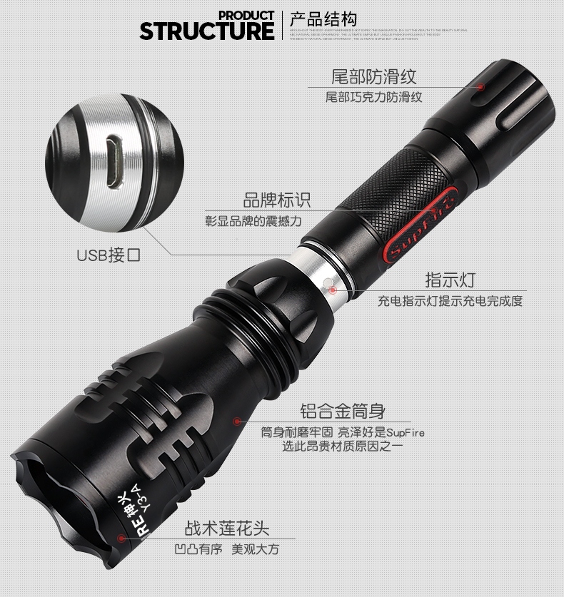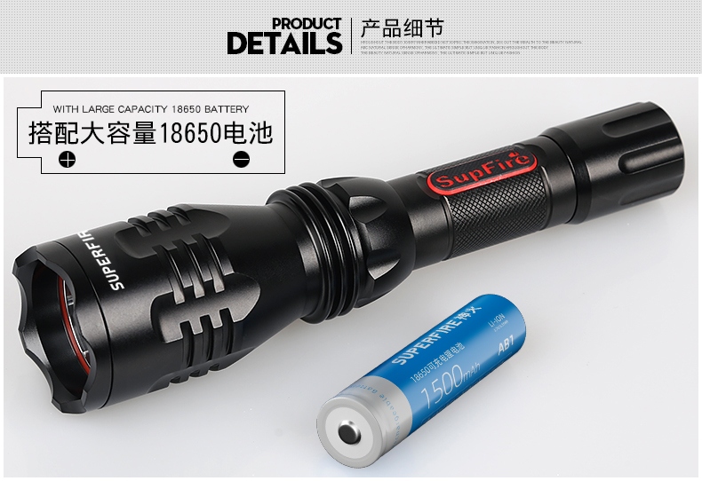 1、千米远射,射程更远,光斑更聚焦。 2、进口灯珠,亮度高,照明效果更好。 3、前后双按键,光源一键点亮,高亮瞬间开启。