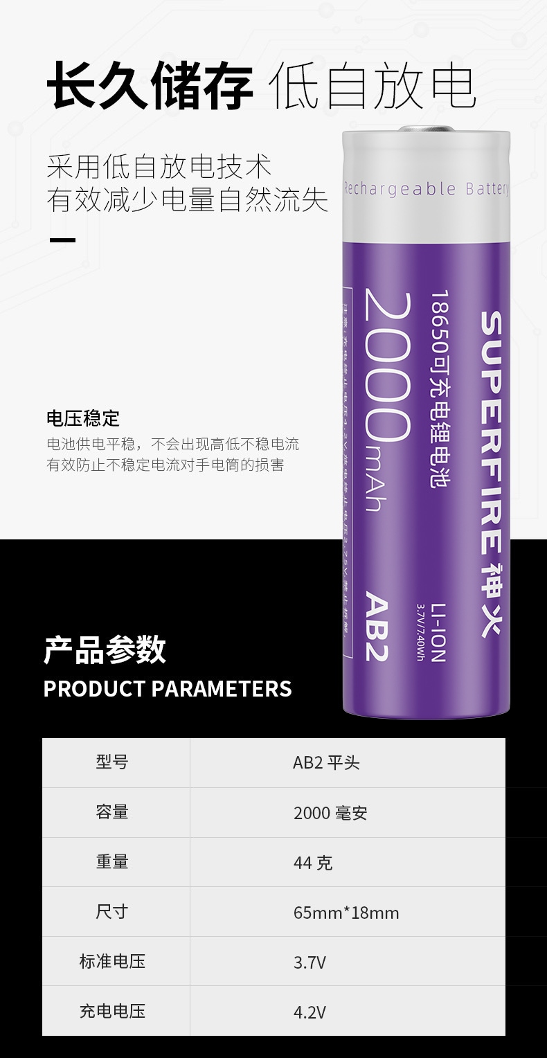 10W专用电池;规格:18650锂充电电池,2000mAh