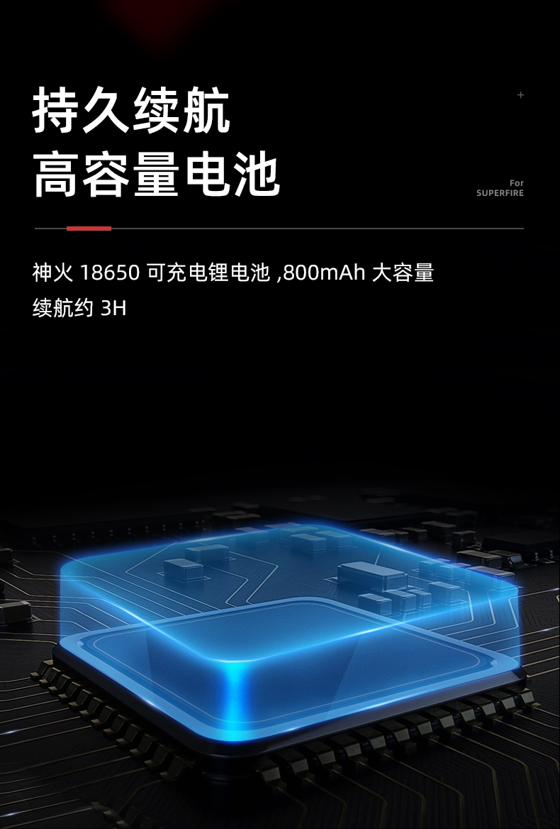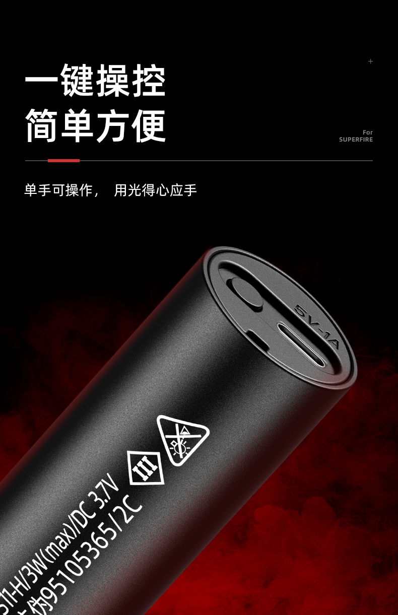 1、千米远射,射程更远,光斑更聚焦。 2、进口灯珠,亮度高,照明效果更好。 3、前后双按键,光源一键点亮,高亮瞬间开启。