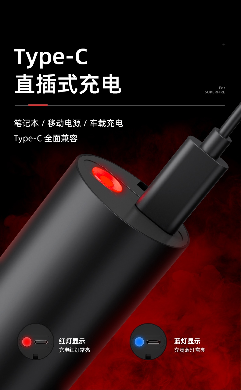 四档调光 Type-C充电 电量显示 铝合金筒身 持久续航 强力防水