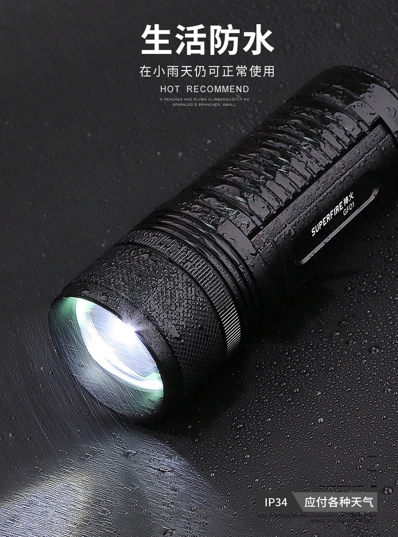 四档调光 Type-C充电 电量显示 铝合金筒身 持久续航 强力防水