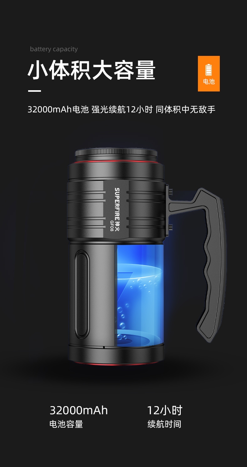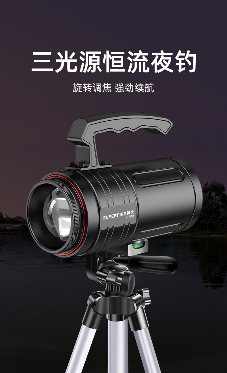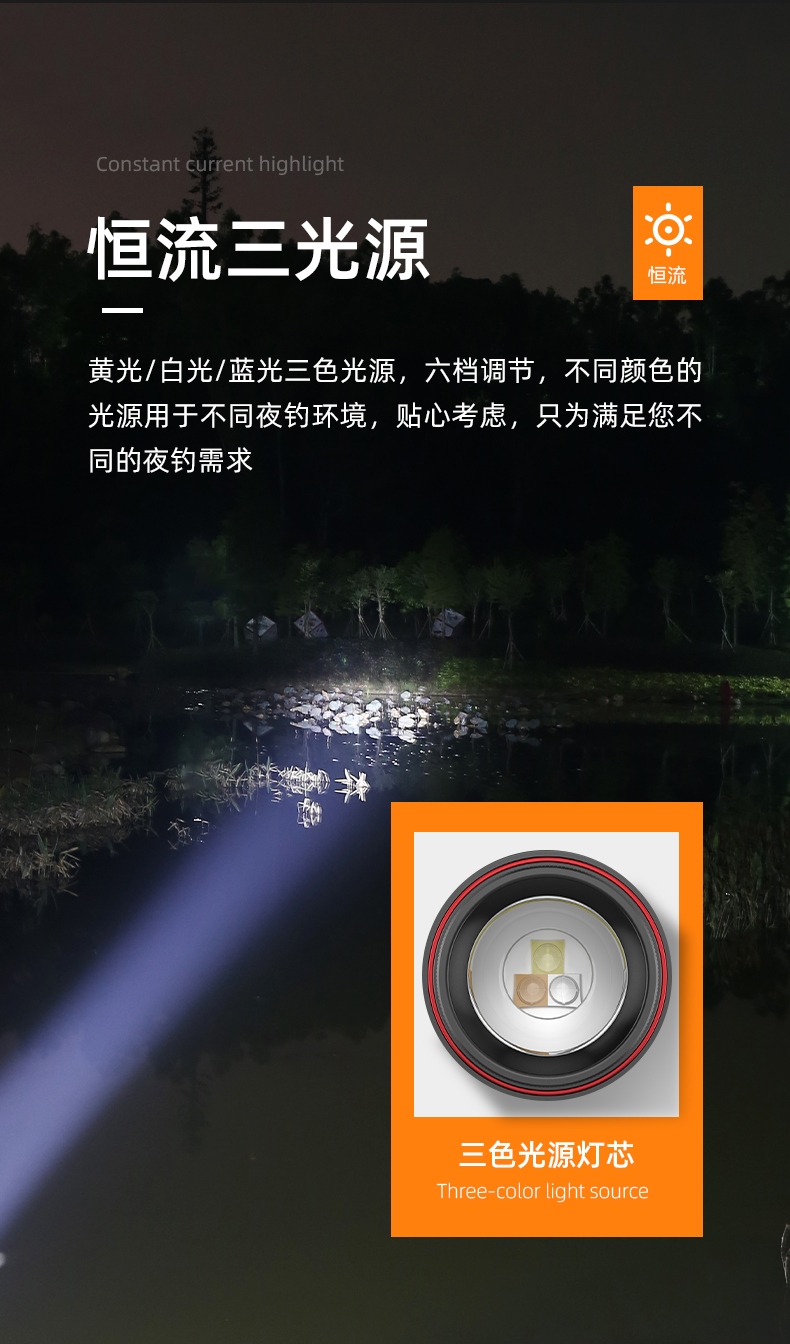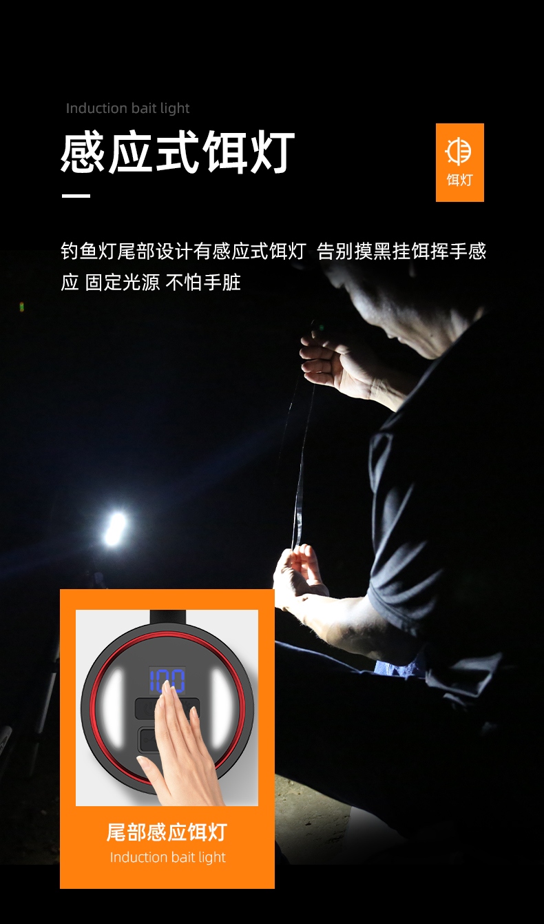 专业钓鱼灯(3种光源:白光、黄光、蓝光),数显电量提示更直观