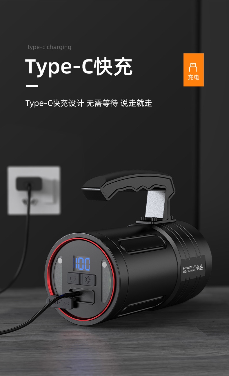 四档调光 Type-C充电 电量显示 铝合金筒身 持久续航 强力防水