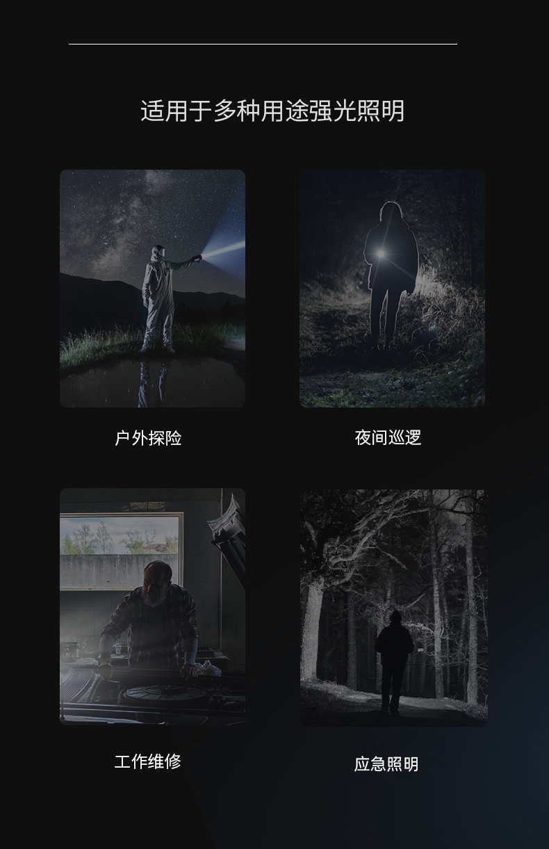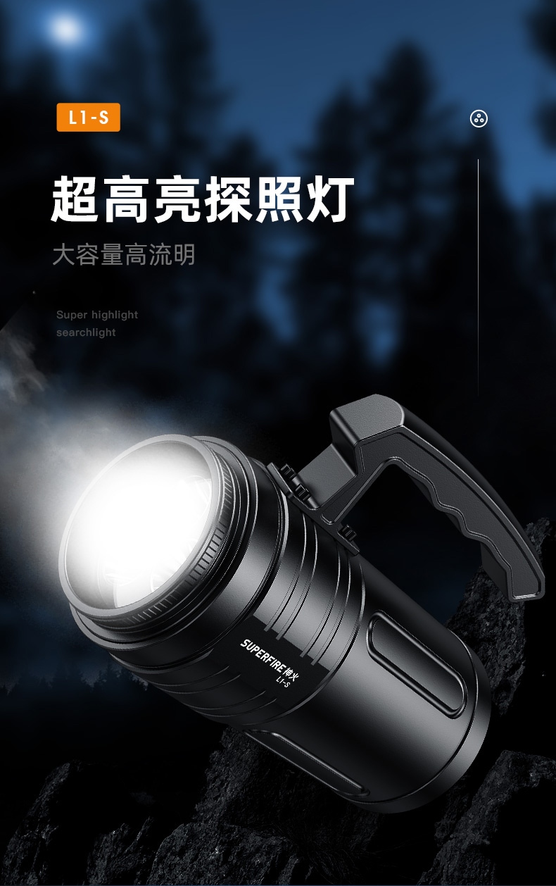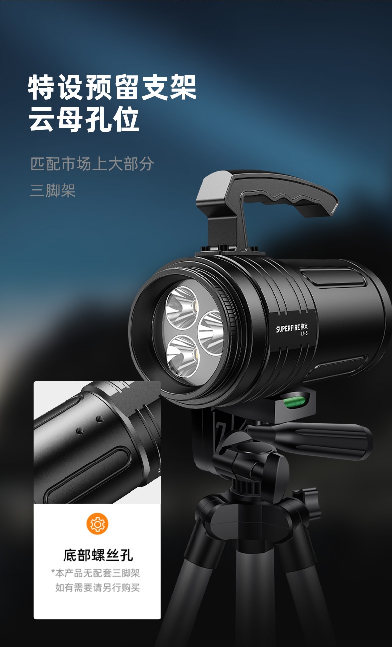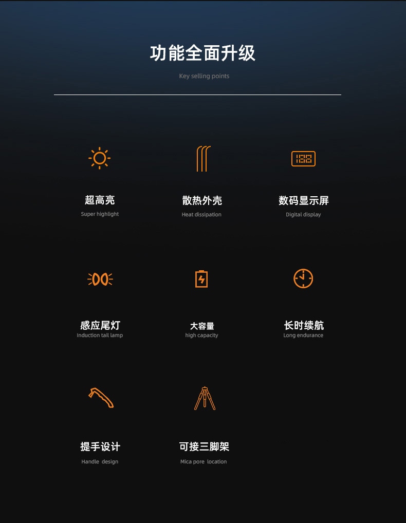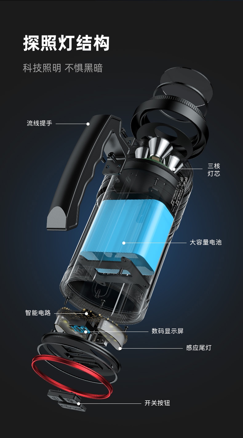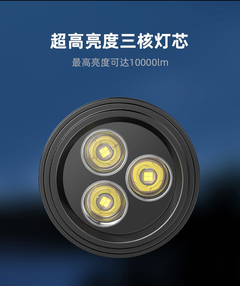 1、超高亮探照灯,最高亮度可达10500lm,大容量32000mAh电池;