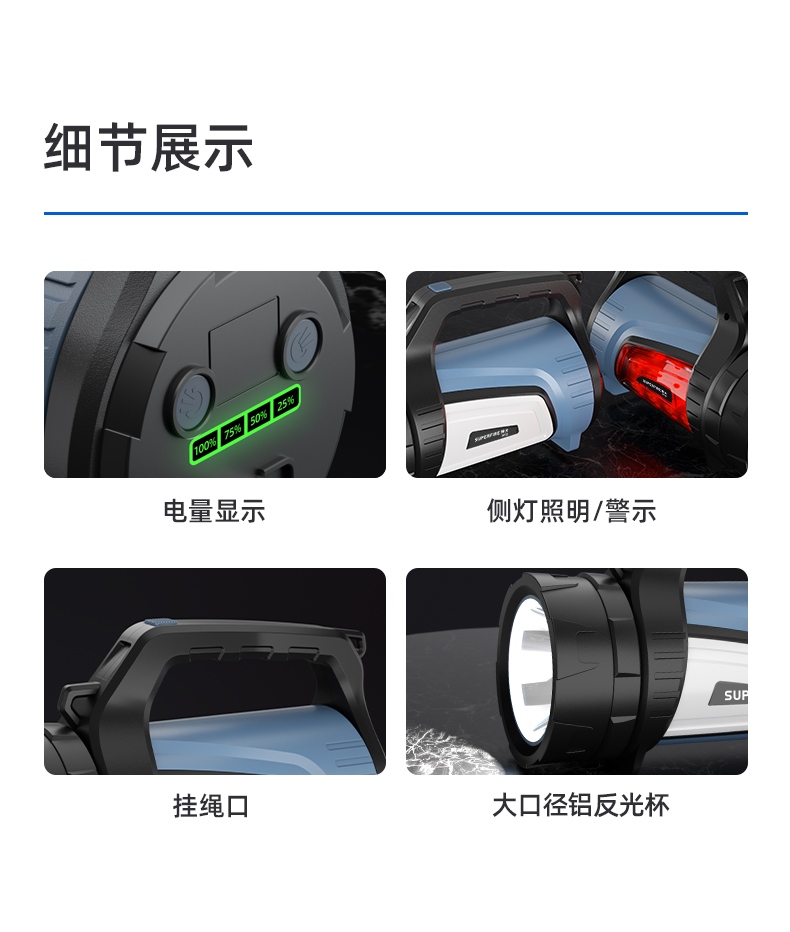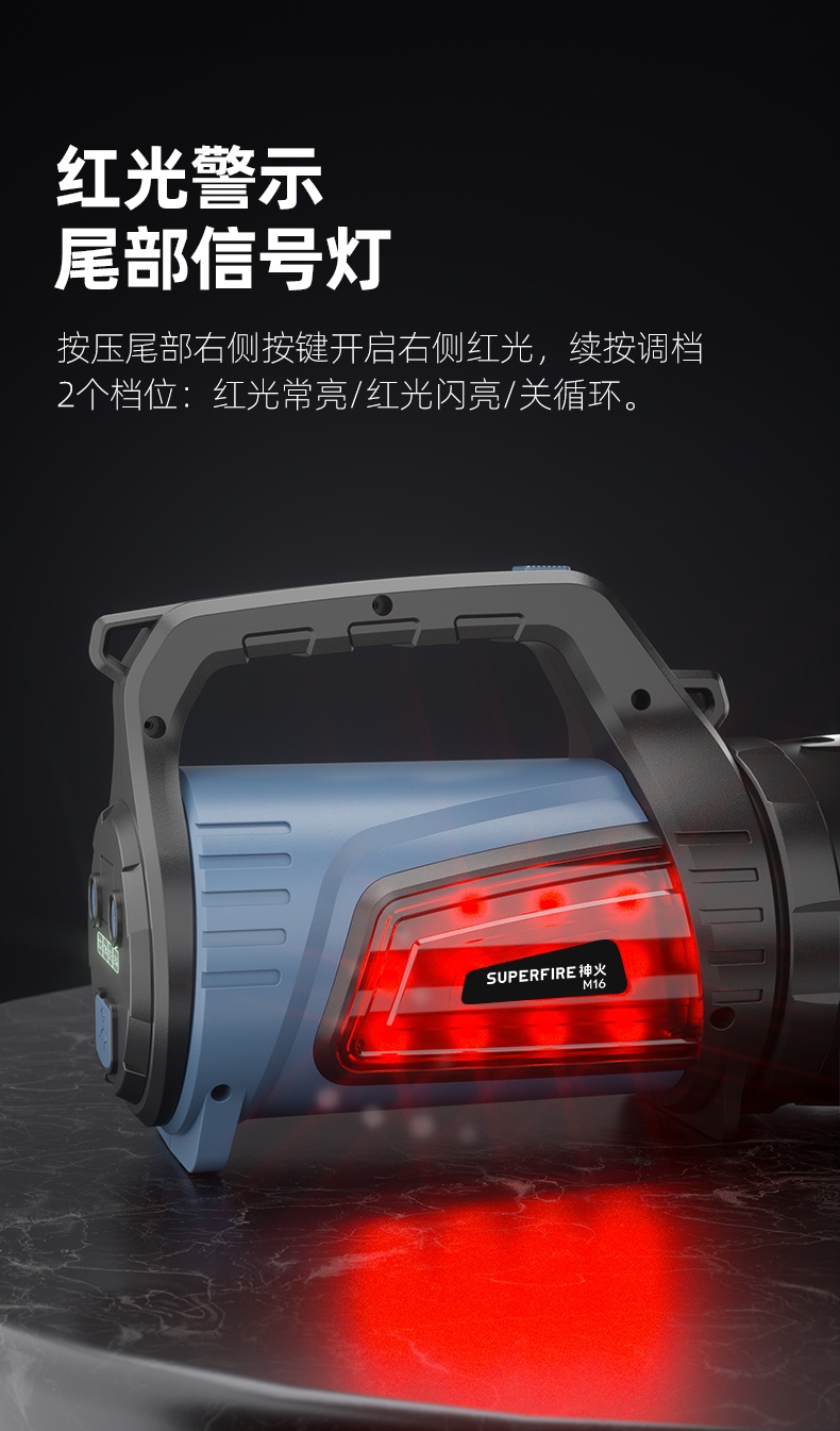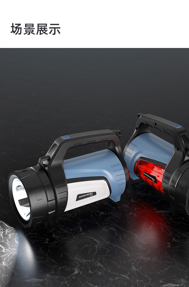 多功能手提探照灯,红白双侧灯,带电量显示,户外巡逻,应急照明,抢险救灾必备