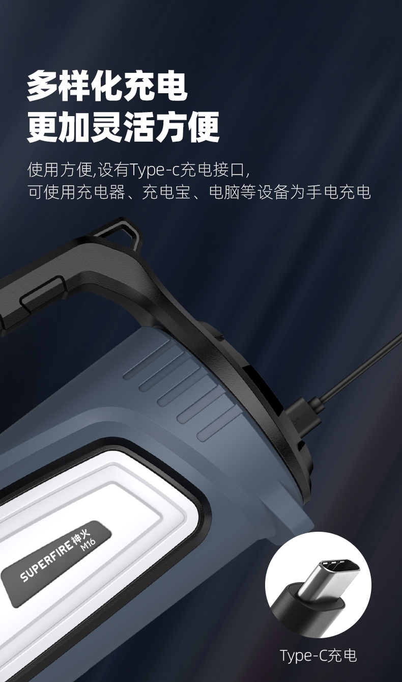 四档调光 Type-C充电 电量显示 铝合金筒身 持久续航 强力防水