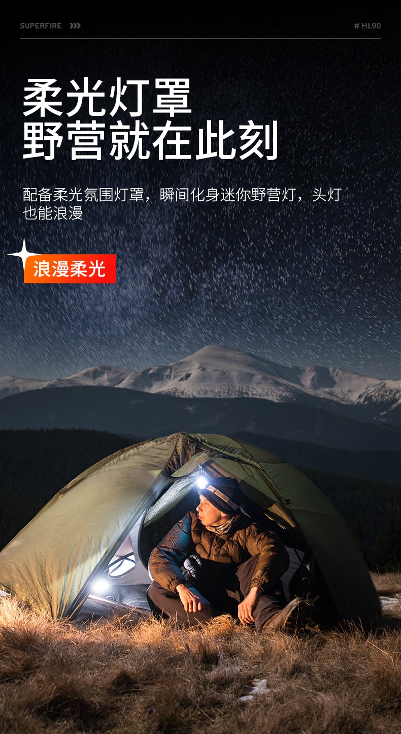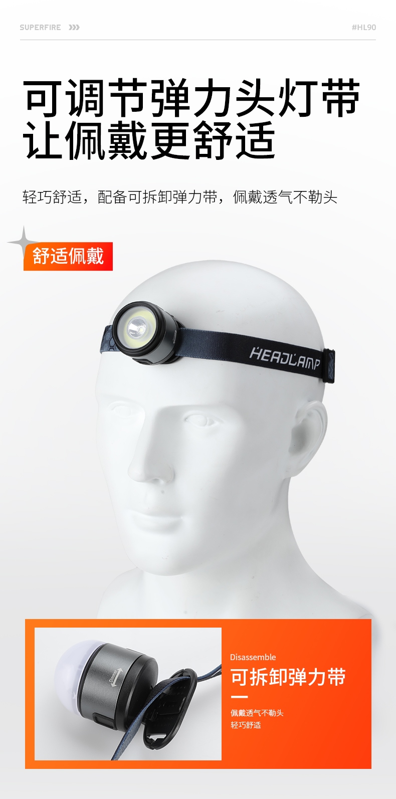 强光亮度,运动头灯,前后均衡设计,轻便不压头,可调节式头灯带,佩戴方便舒适,伸缩调焦,光照范围大,照射距离远,头灯角度调节,超90度角度随意调节,适宜各种环境使用