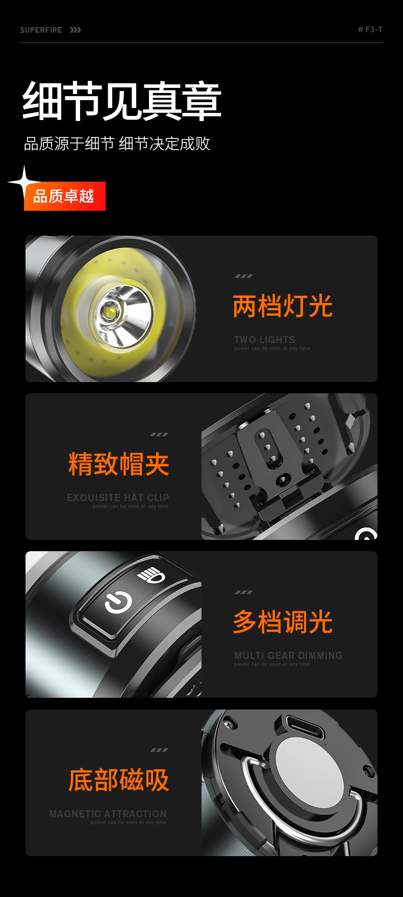 1、千米远射,射程更远,光斑更聚焦。 2、进口灯珠,亮度高,照明效果更好。 3、前后双按键,光源一键点亮,高亮瞬间开启。
