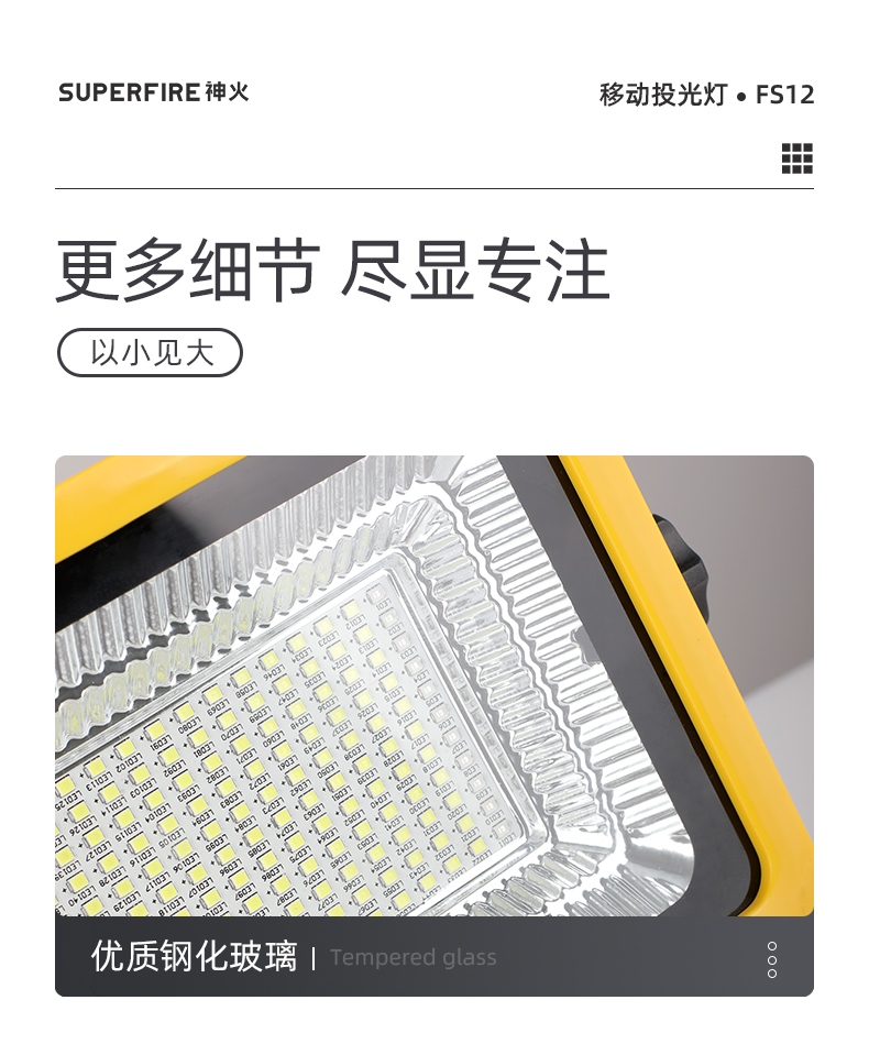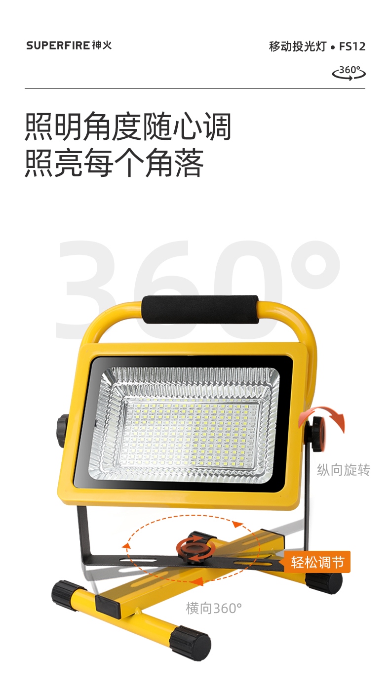 照明角度随心调,照亮每个角落。 IP54防水等级,雷雨天同样光亮。 简约便携外观风格,移动便携设计。
