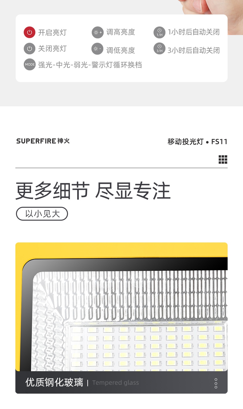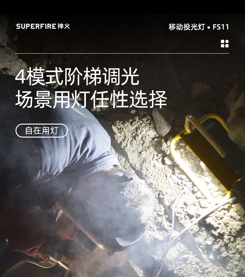 4模式调光 18小时续航 强光|中光|弱光|警示灯 远程遥控|阶梯调光|定时照明