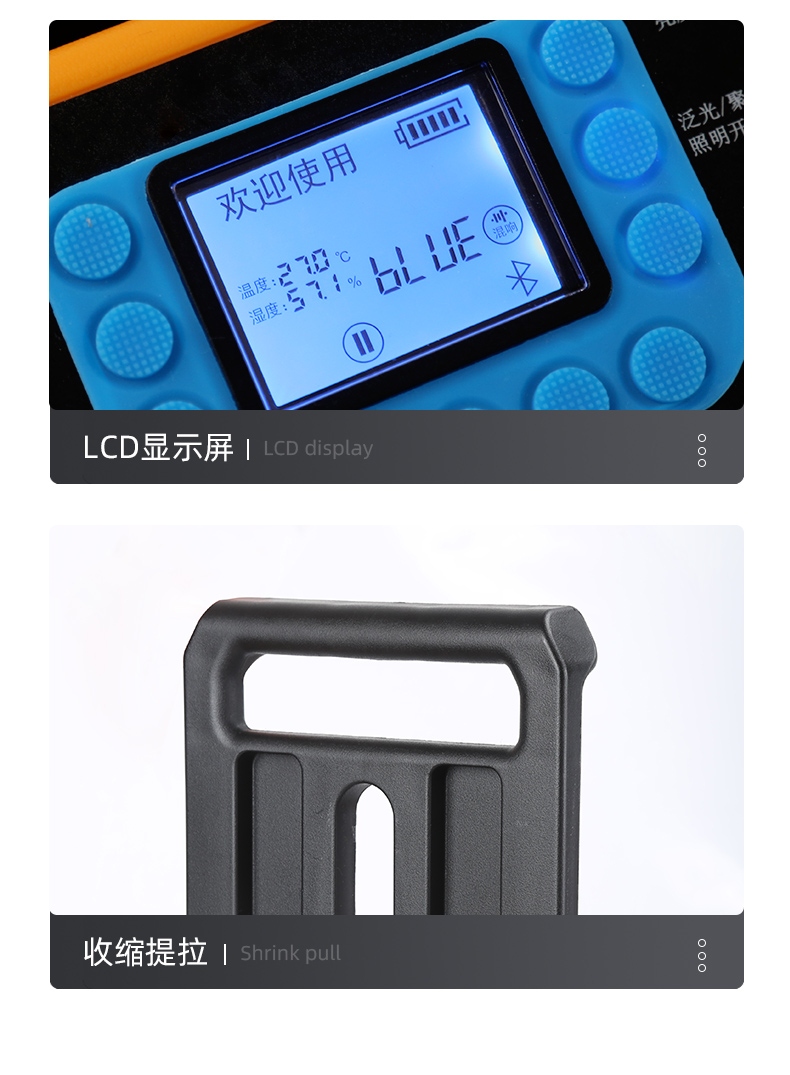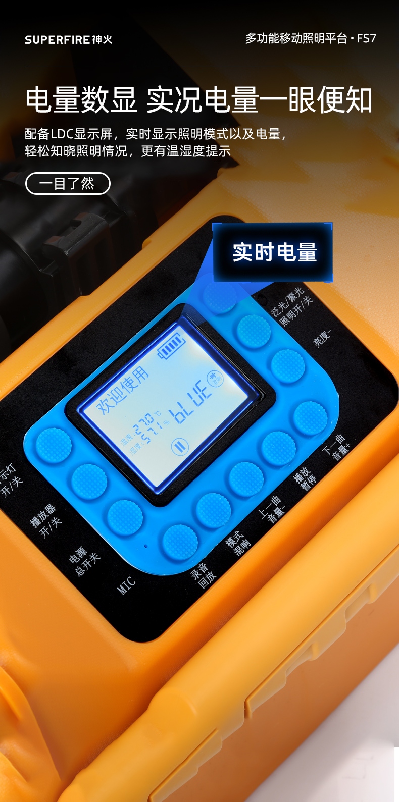 4、配备LDC显示屏,实时显示照明模式以及电量,更有温湿度提示。实况电量一眼便知;