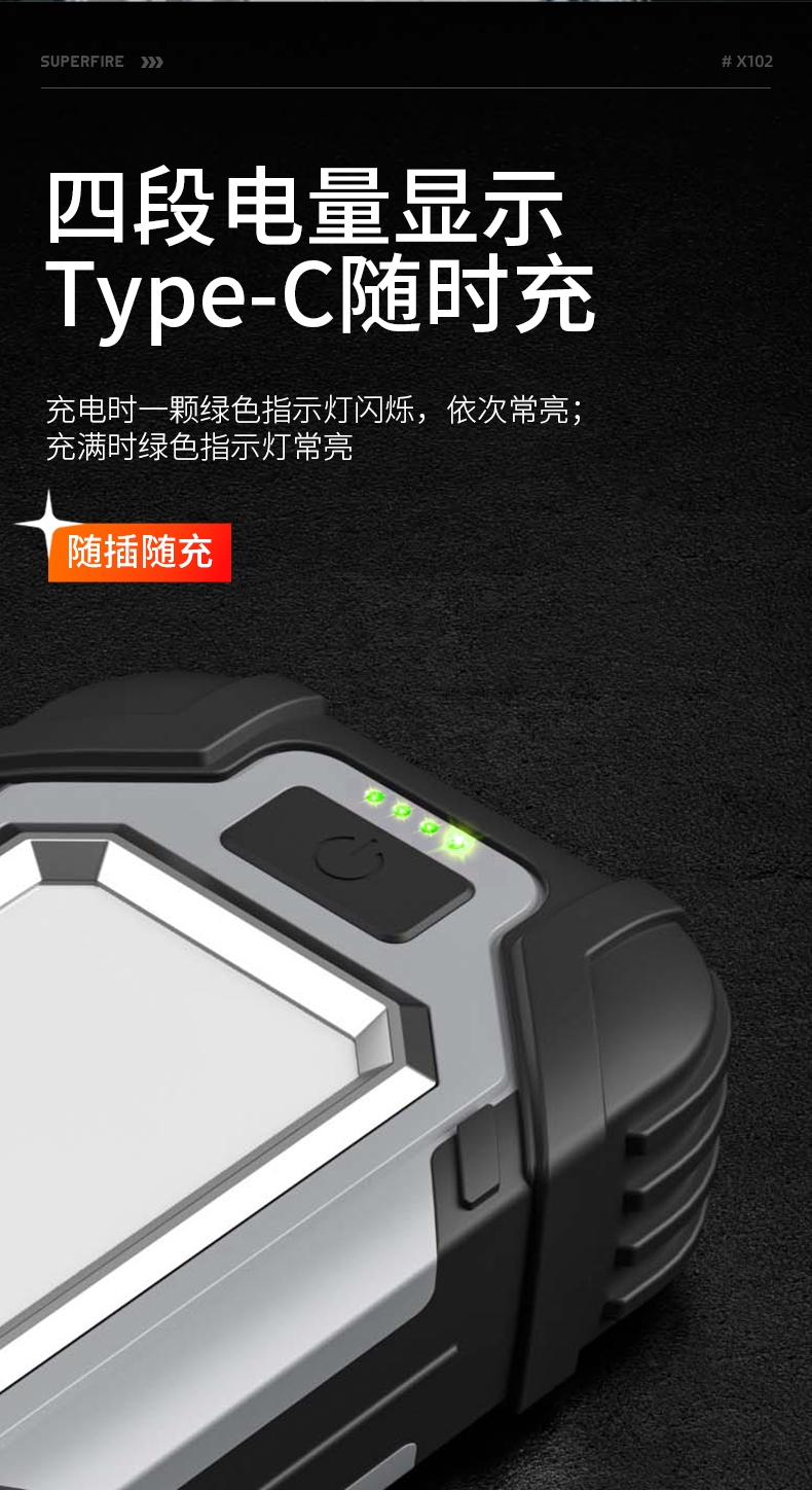 四档调光 Type-C充电 电量显示 铝合金筒身 持久续航 强力防水