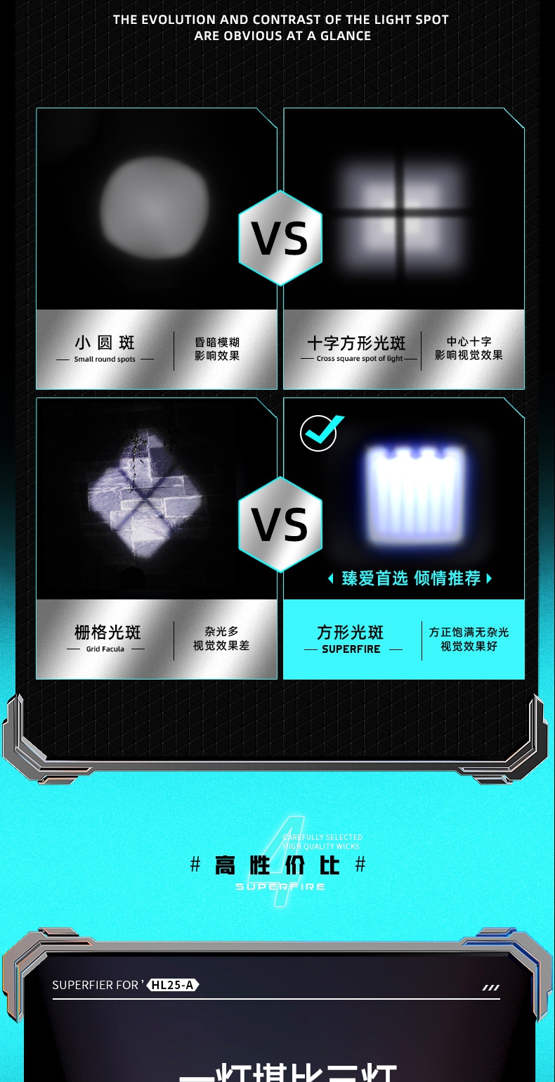 1、千米远射,射程更远,光斑更聚焦。 2、进口灯珠,亮度高,照明效果更好。 3、前后双按键,光源一键点亮,高亮瞬间开启。