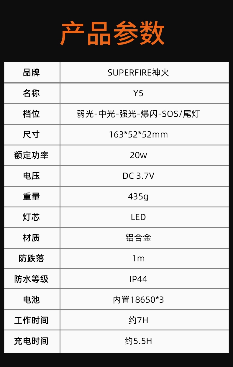 SUPERFIRE神火手电筒Y5
