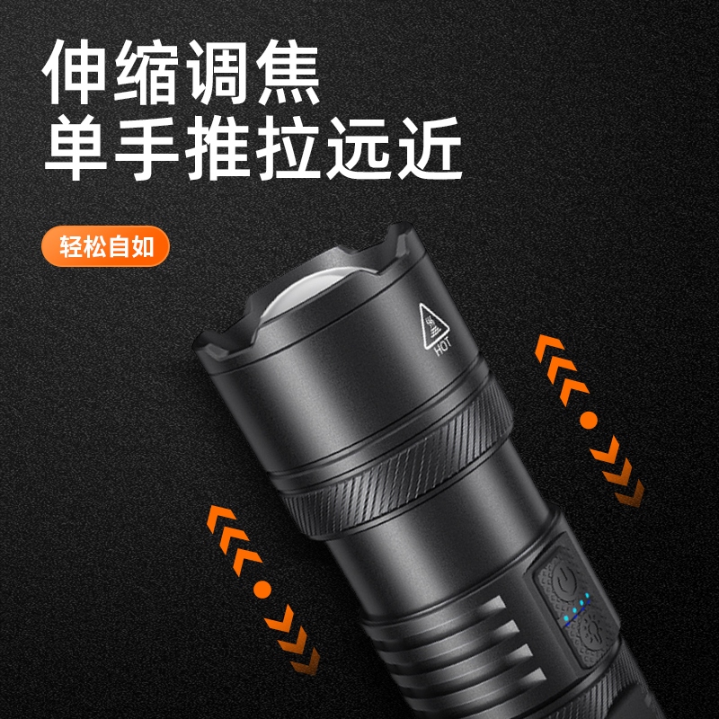 1、前后双灯,可满足多种环境下照明。推拉灯头可实现伸缩调焦。 2、最高约7H续航,有效满足长时间照明使用。 3、多重安全程序,有效延长使用寿命及时间。