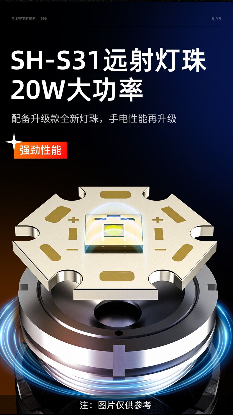 3、新型远射灯珠,20W大功率,亮度高,照明效果好。