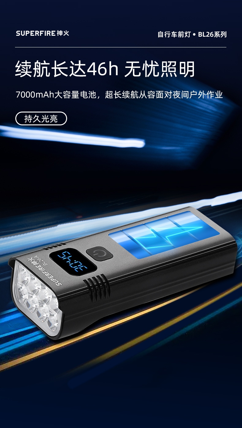 续航长达46h 无忧照明 7000mAh大容量电池,超长续航从容面对夜间户外作业