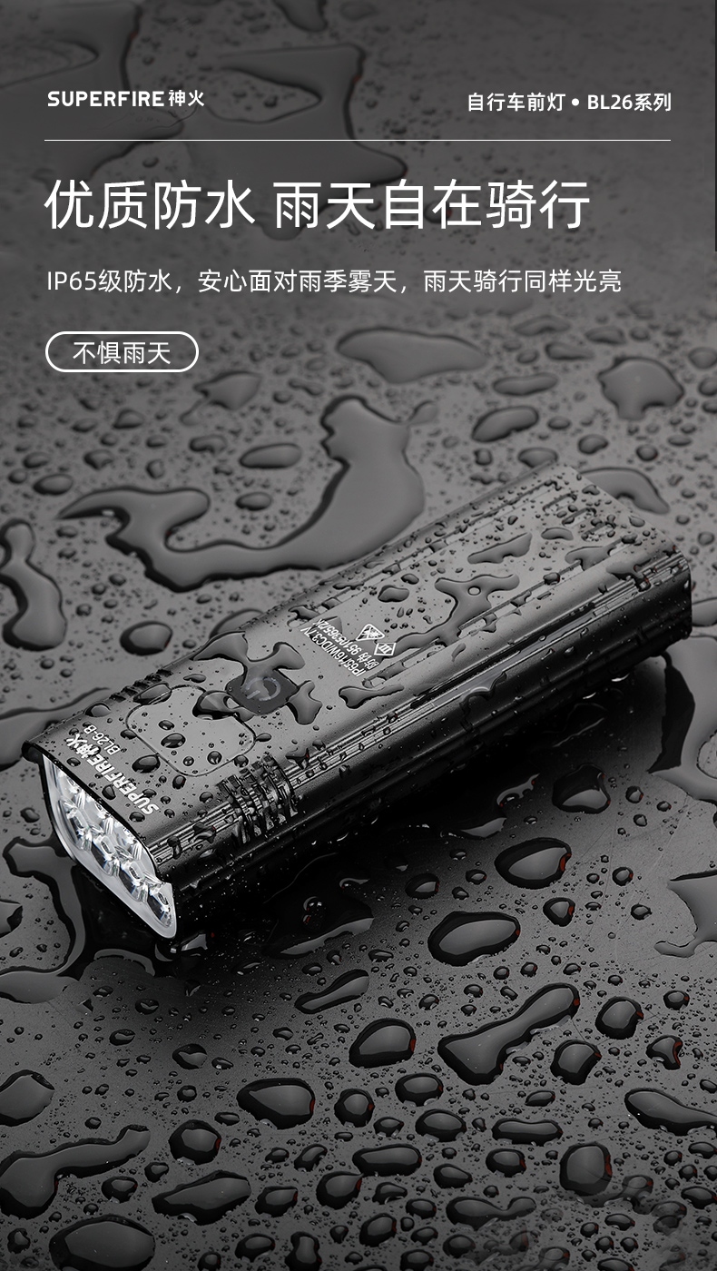 优质防水 雨天自在骑行 IP65级防水,安心面对雨季雾天,雨天骑行同样光亮