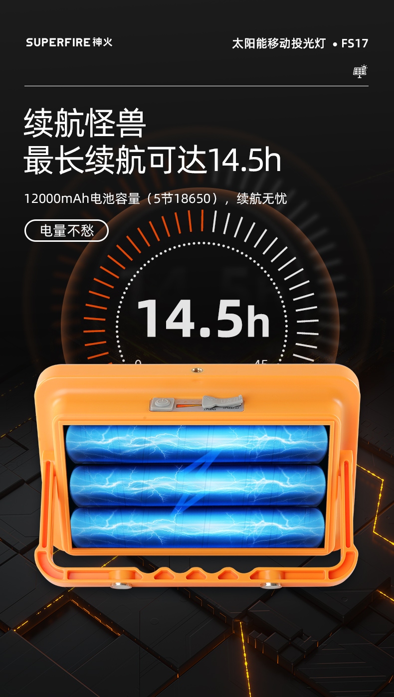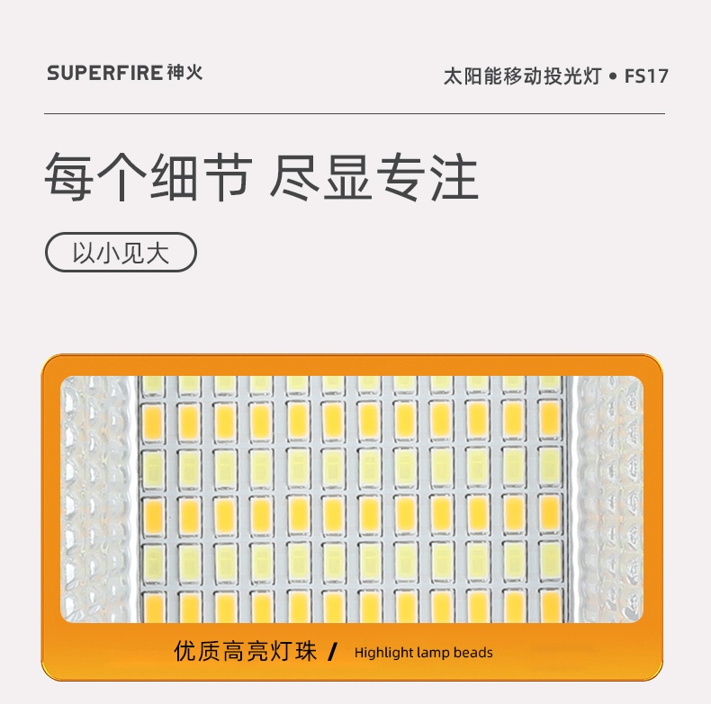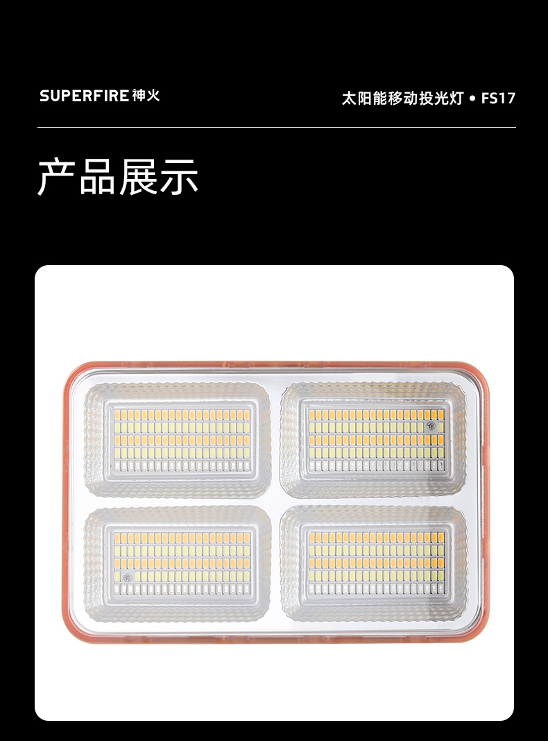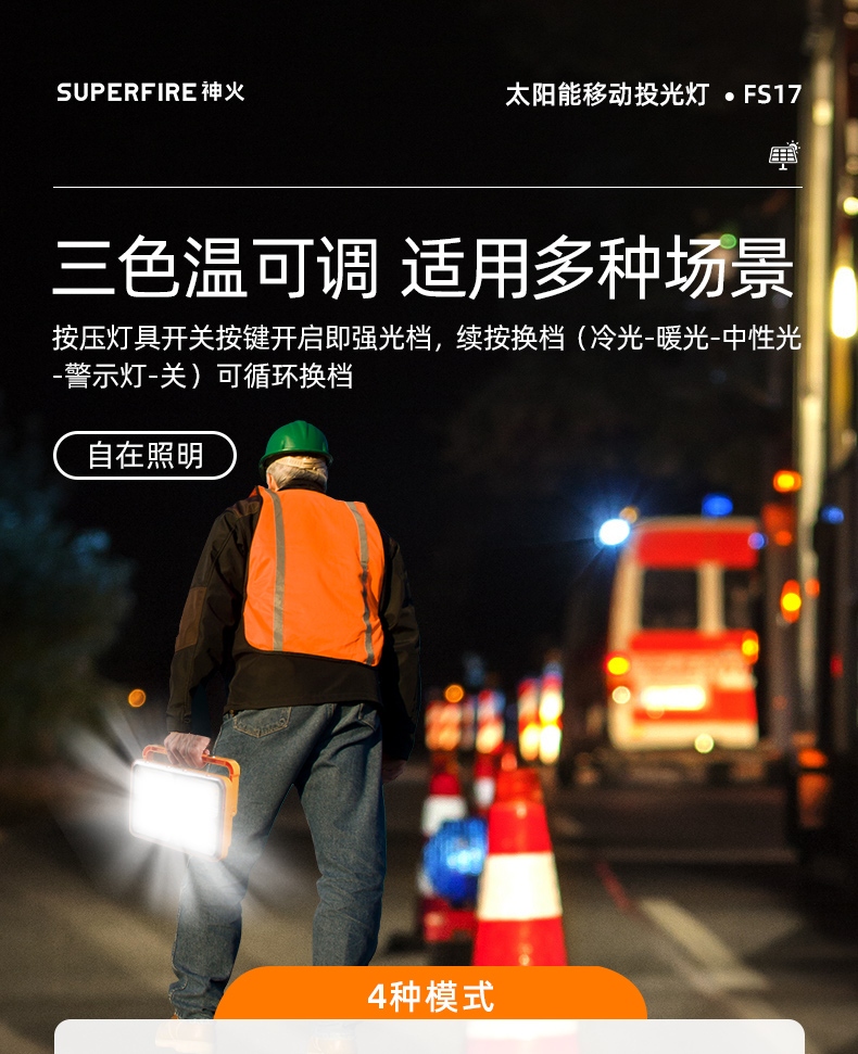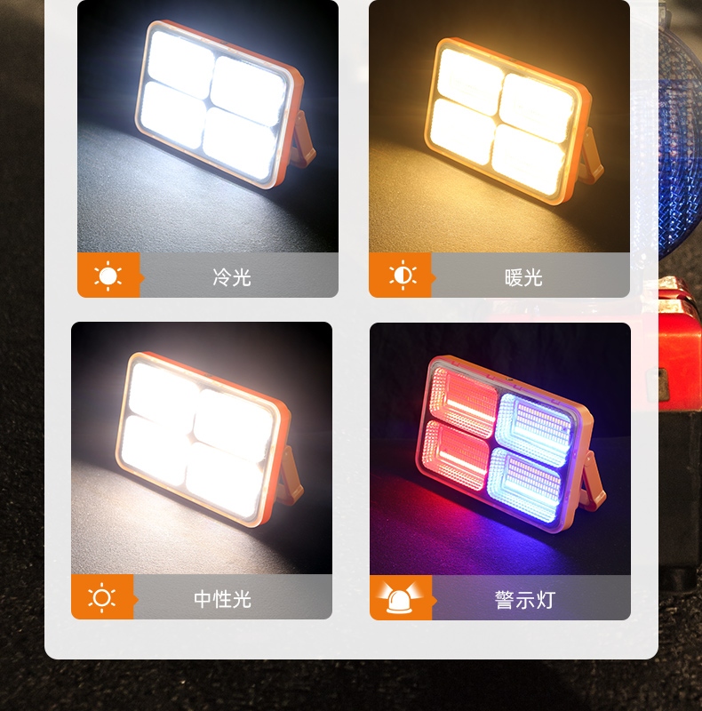 1、多档调光,可满足不同使用场景下的照明需求; 2、含提手,握感更舒适。携带更简单; 3、新型高亮远射灯珠,60W大功率,亮度高,照明效果好。