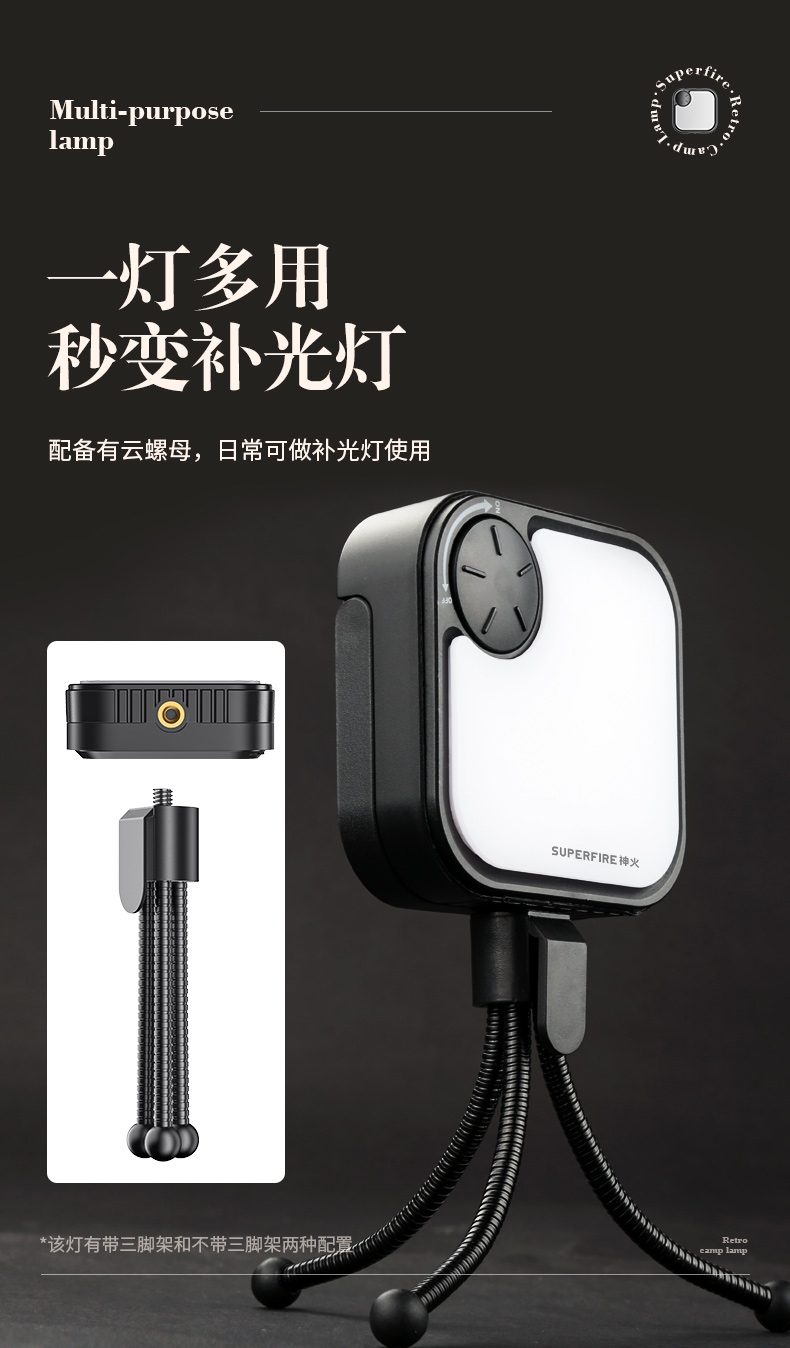 6.带有云螺母,可做补光灯使用