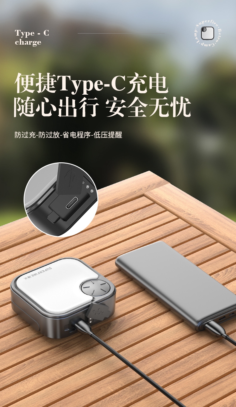 3.配有小TYPE-C输入接口,充电方便。充电时可边充电边使用照明功能。