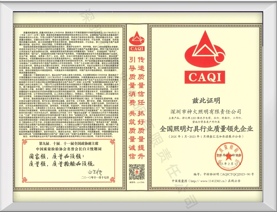 全国照明灯具行业质量领先企业