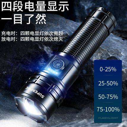 伸缩调焦、四段电显、五档调光